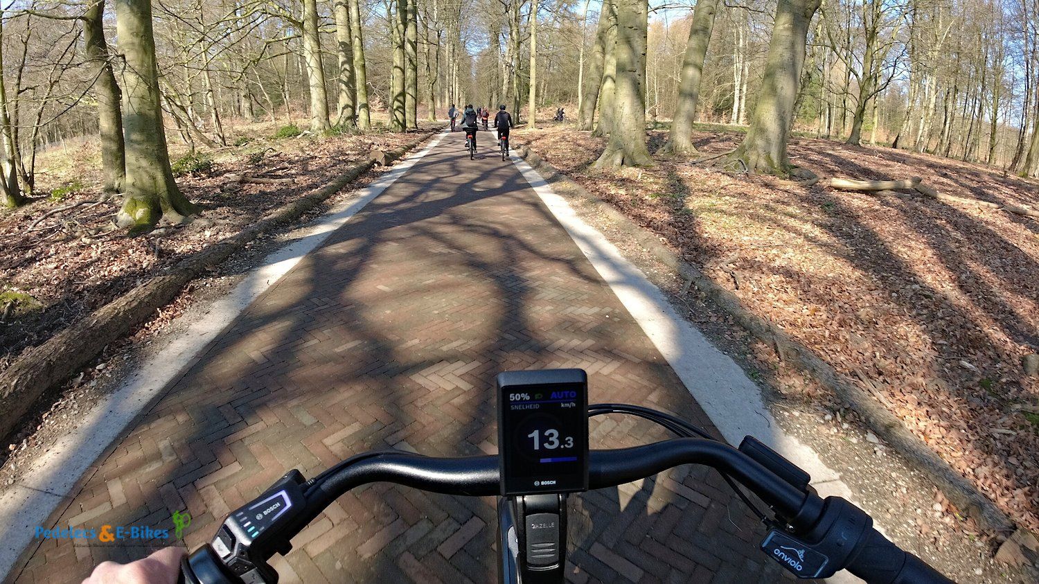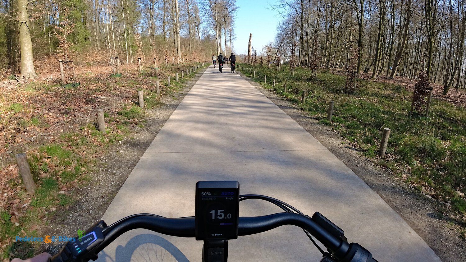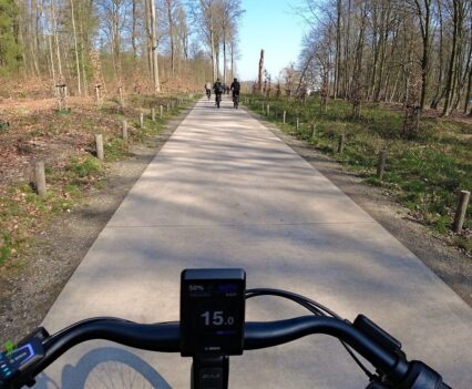 Nach einigen Kilometern führte uns ein ebensolcher Weg in den Wald, der im weiteren Verlauf auch Ansprüche an den verbauten Bosch-Antrieb stellt, um nicht allzu steile Anstiege problemlos zu glätten. Der Weg wurde schmaler und gleichzeitig kurviger, was den Spaß am Fahren weiter erhöhte.