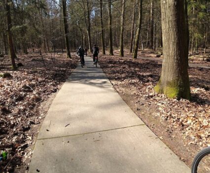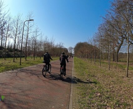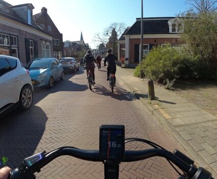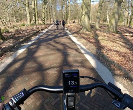 Wichtig war es viel eher, jetzt das Fahrgefühl der Gazelle E-Bikes am eigenen Leib zu erleben. So machten wir uns zu einer kleinen Tour ins Umland auf, die uns in den Veluwezoom-Nationalpark führen sollte. Die Strecke führte uns zuerst durch die Stadt Dieren mit ihren typischen Häusern, bevor wir auf einem breiten Rad- und Fußweg aus der Stadt heraus gelangten.