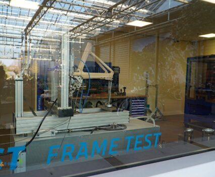 Natürlich war uns, auch aus Rücksicht auf die Mitarbeitet, nur an manchen Stellen das Erstellen von Bildern erlaubt. Über die Lackiererei gelangten wir dann zuerst in das Lager und danach an den Ort wo die bereits farbig lackierten Rahmen dann mit den entsprechenden Decals bestückt wurden, bevor dann die deckenden Lackschichten aufgebracht werden.