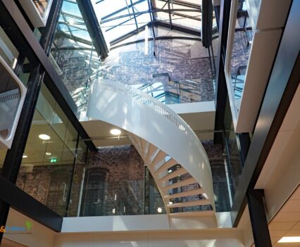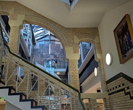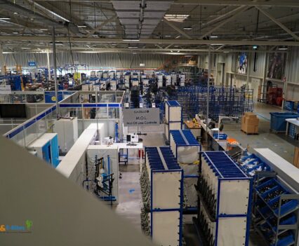 Über den beeindruckend integrierten und dadurch geschlossenen Innenhof ging es dann in die Fabrik. Wir hatten mit Ivo einen erfahrenen Produktionsingenieur als Führer durch die Produktion und erfuhren dabei viel über die Abläufe und Details der Fertigung.