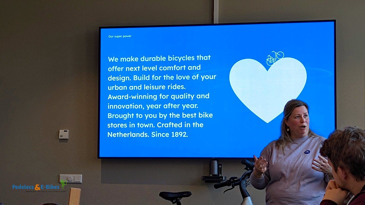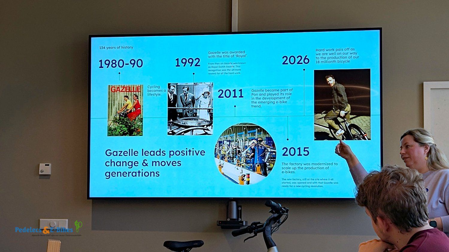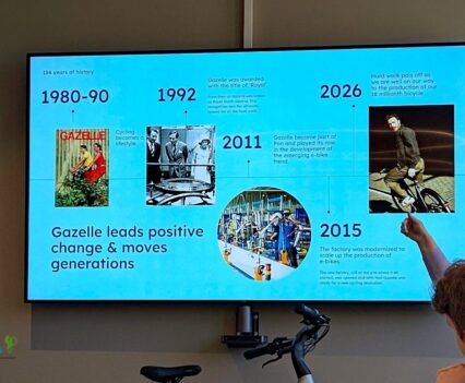 Nach einer herzlichen Begrüßung gab uns Brand-Managerin Maartje einen Überblick, welches der Antrieb hinter Marke ist und stellte zudem die Entwicklung des Unternehmens am Standort Dieren aus Markensicht heraus. Sie erklärte, wofür Gazelle seit Jahrzehnten steht und wie man diesen Spirit in die heutige Zeit überführt hat.