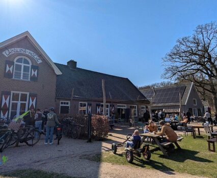 Er führte uns dann noch tiefer und mit mehr Kurven durch den Wald, bevor wir dann inmitten des Nationalparks zu De Carolinahoeve gelangten, einem alten Bauernhof, der zu einem Restaurant und einem Ferienhaus für 6 Personen umgebaut wurde.