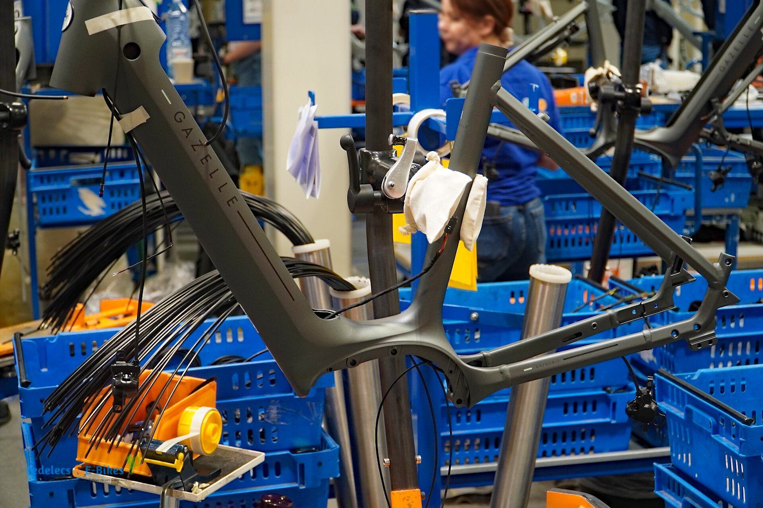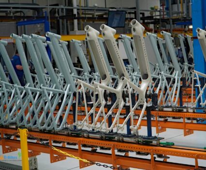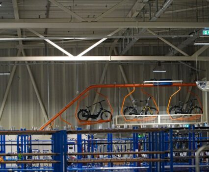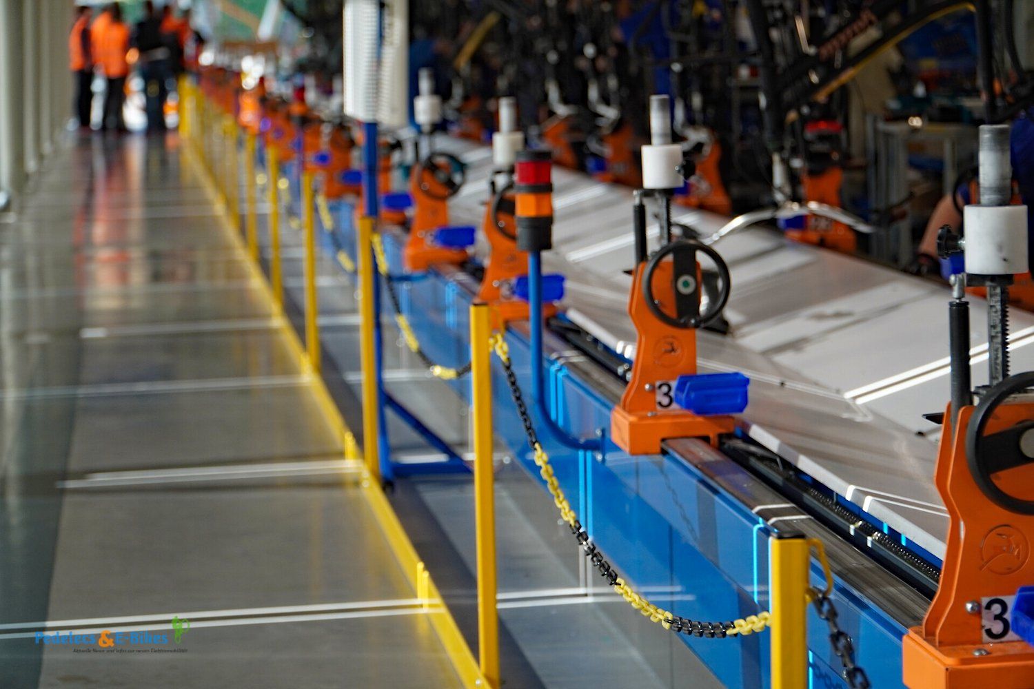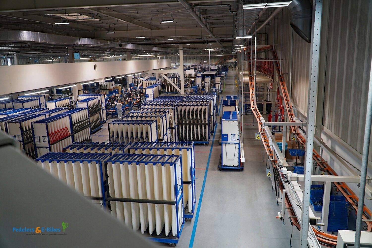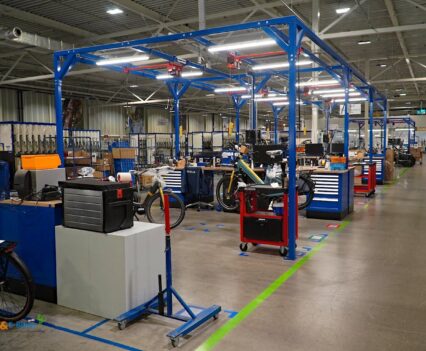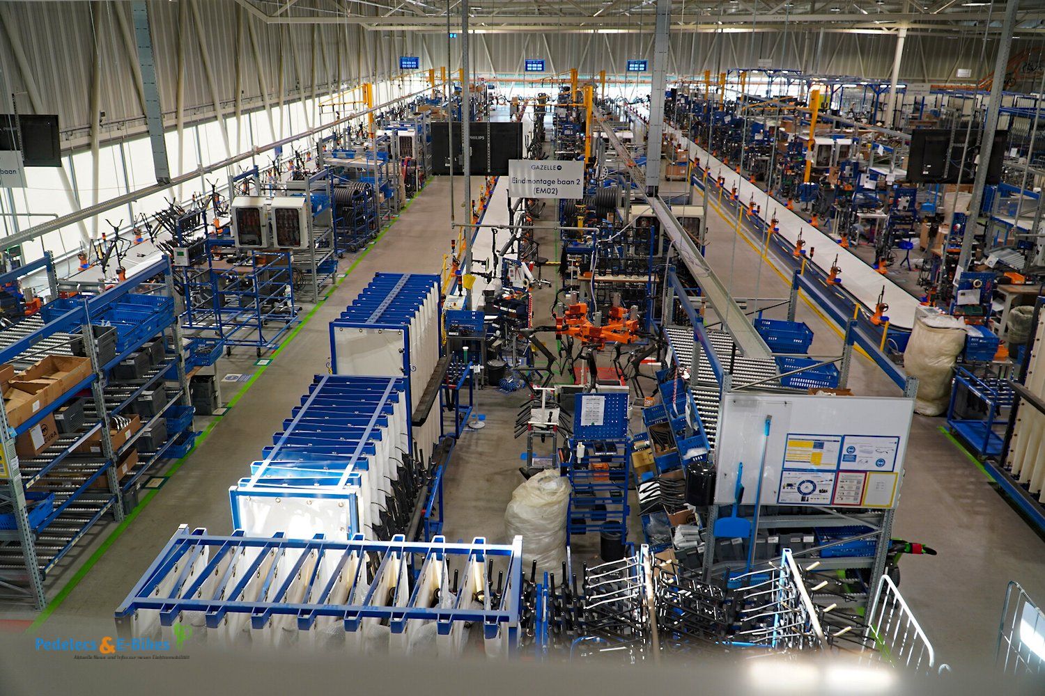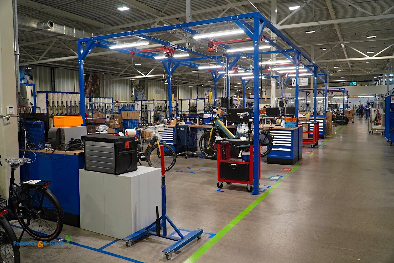 Über die Laufradmontage, bei welcher auch diverse Nabenschaltungen eingespeicht wurden und viel auf vollautomatische Zentriermaschinen zurückgegriffen wurde, gelangten wir dann an die Produktionslinien, wo die entsprechenden Räder und Pedelecs dann aus den Rahmen, Komponenten und Vorbaugruppen zusammengesetzt wurden.