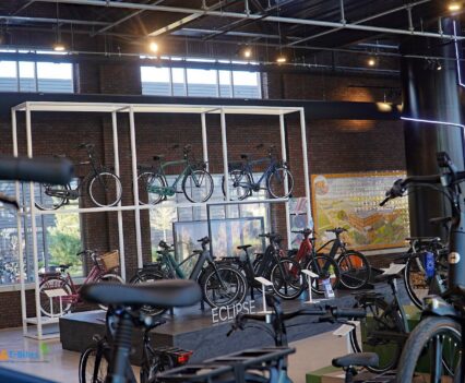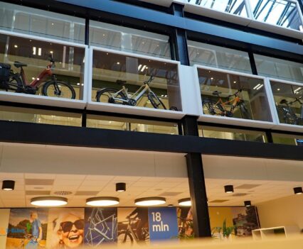 Nach diesen Eindrücken gelangten wir wieder zurück in den zur Kantine umgebauten Innenhof, von wo wir uns dann in das angrenzende und gleichzeitig auch größte Gazelle Experience Center aufmachten. Hier sollen Interessierte so gut wie jedes Rad der Marke ausgiebig ansehen und zur Probe fahren können, unterstützt von extra geschulten Mitarbeitern.