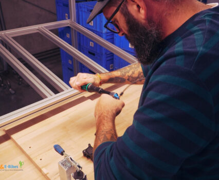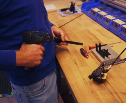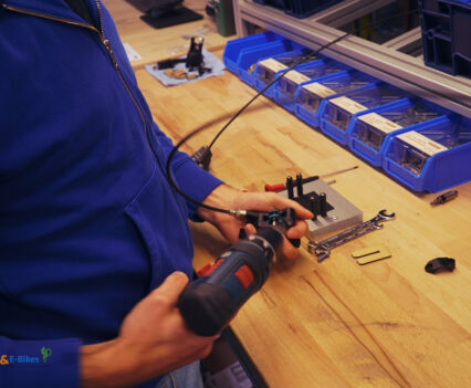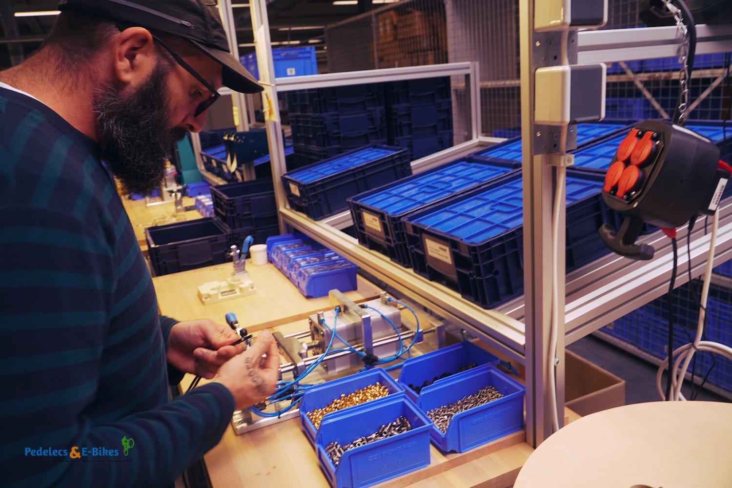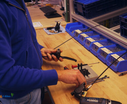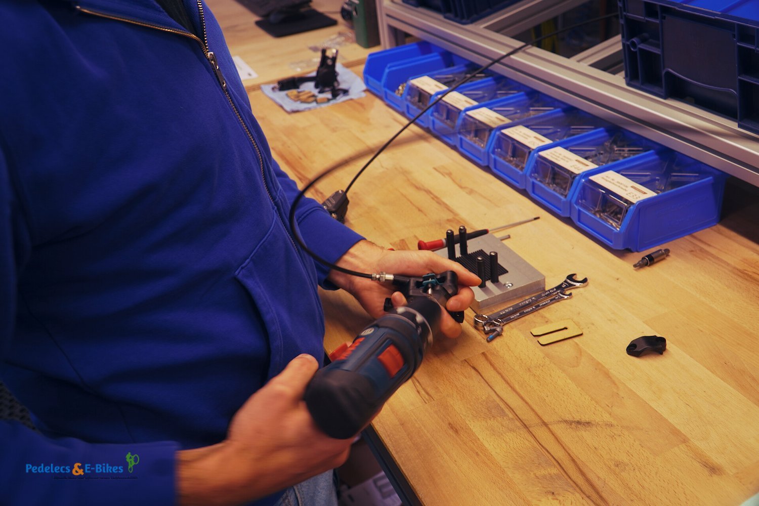 Auch am Bremshebel komplettiert der Mitarbeitet die benötigten Halterungen.