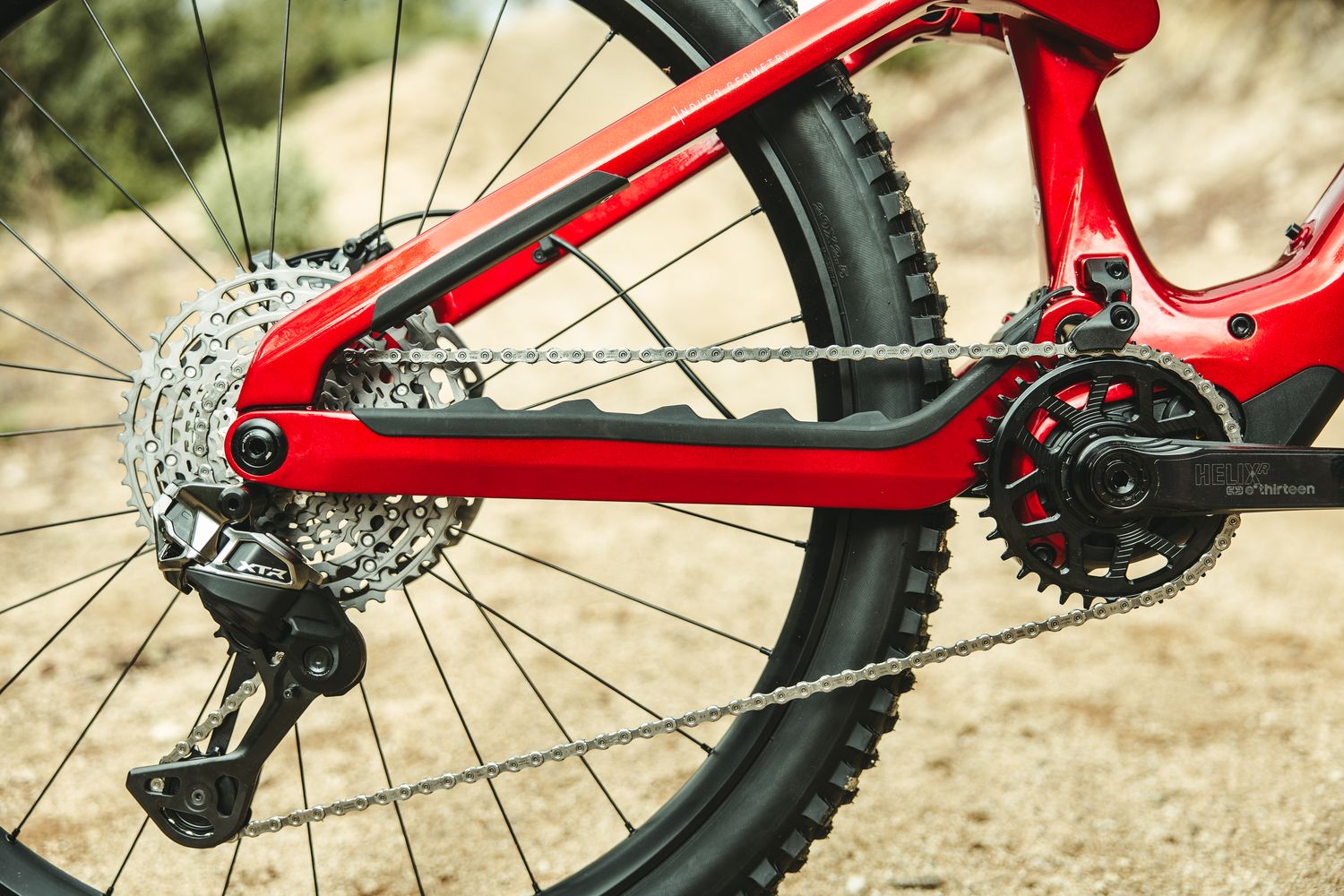 Der Rahmen ist für Dropper Posts mit bis zu 200 mm Hub ausgelegt und verfügt über einen integrierten Ladeport sowie einen doppelt integrierten Kettenstrebenschutz.