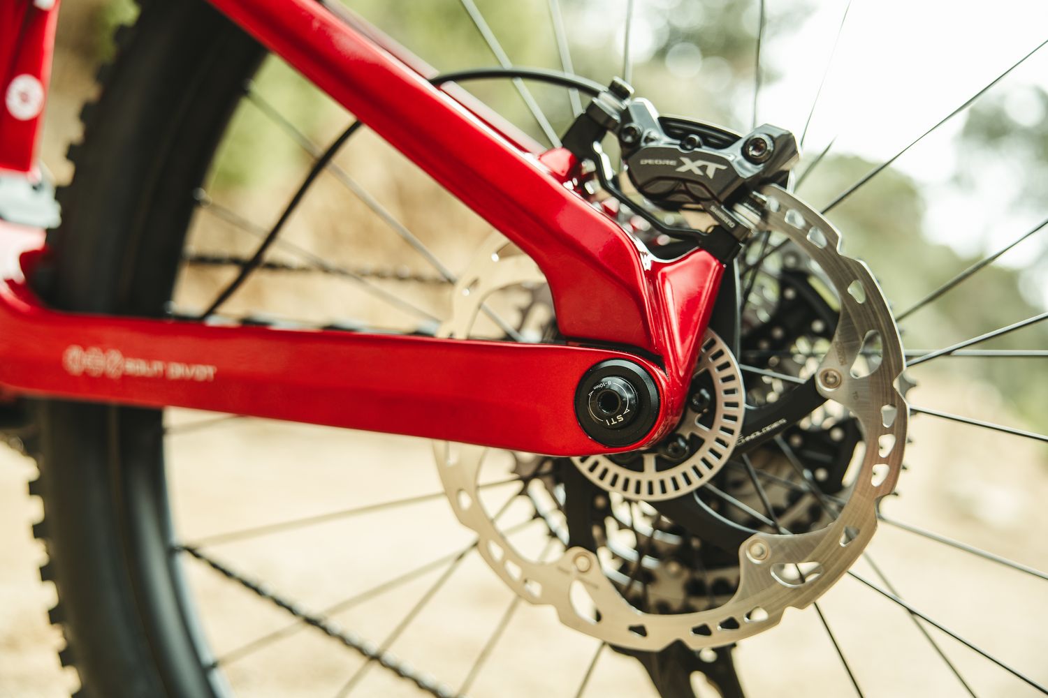 Als Kurbel kommt bei allen Modellen die E-Thirteen 34T in 160 mm Länge zum Einsatz. Bremsseitig setzt die gesamte Baureihe auf Shimano XT 4-Kolben-Bremsen mit 203-mm-Scheiben vorne und hinten – beim Einstiegsmodell 9.0 kommen die Shimano MT520 zum Einsatz, ebenfalls 4-Kolben. Als Dropper Post sind je nach Modell der Fox Transfer Factory (9.8) oder der X-Fusion Manic TA in 31,6 mm Durchmesser verbaut.