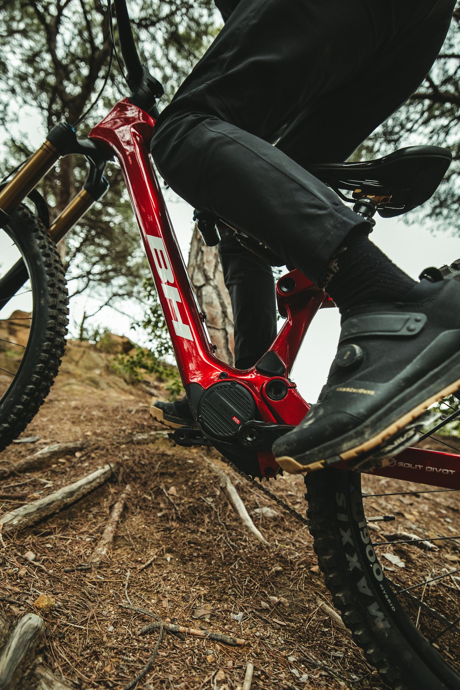 Das Hinterbausystem basiert auf dem Split-Pivot-Prinzip, das BH Bikes in allen Fully-Modellen einsetzt. Das System zielt auf eine Trennung der Brems- und Pedaliereinflüsse auf den Hinterbau ab: Anti-Rise-Werte sollen sicherstellen, dass das Fahrwerk beim Bremsen aktiv bleibt und damit Traktion und Kontrolle verbessert werden. Für ein E-MTB ist die Pedaliereffizienz des Hinterbaus besonders relevant, da sie direkten Einfluss auf die Reichweite hat.