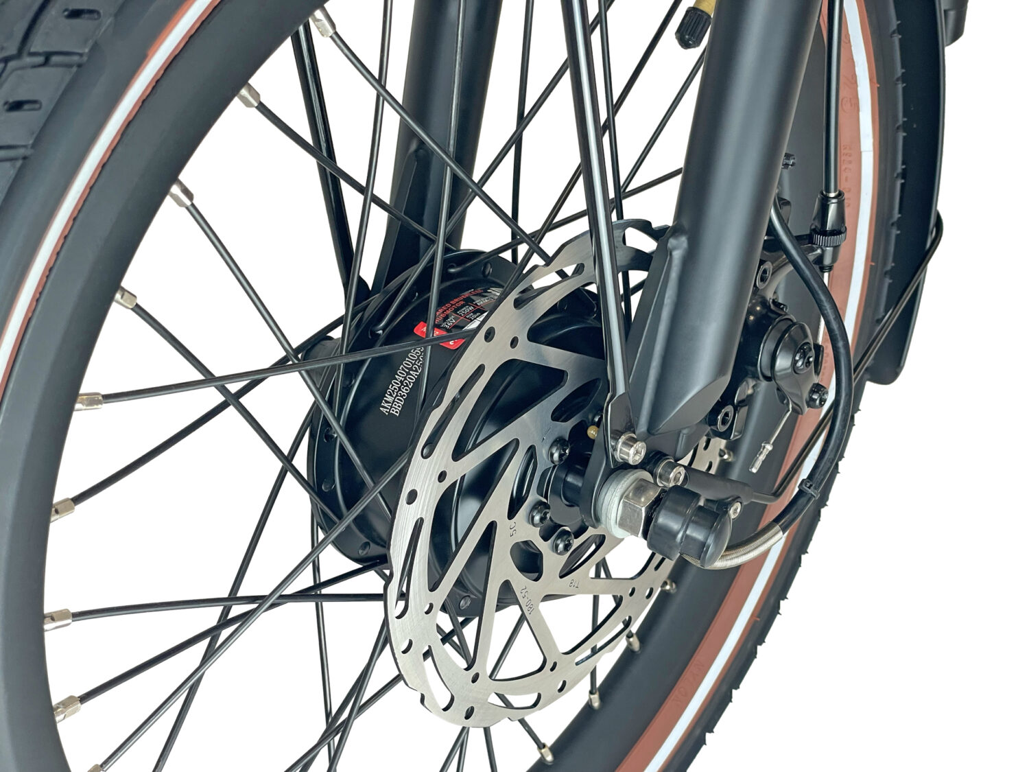 Angetrieben wird das MINNA von einem kompakten Frontmotor mit 36 Volt und einem maximalen Drehmoment von 50 Newtonmetern. Die Unterstützung reicht bis zur gesetzlich erlaubten Höchstgeschwindigkeit von 25 km/h und wird über einen LCD-Bordcomputer gesteuert. Eine verstärkte Hinterradbremse soll dabei für ein ausgewogenes und kontrollierbares Bremsverhalten sorgen.