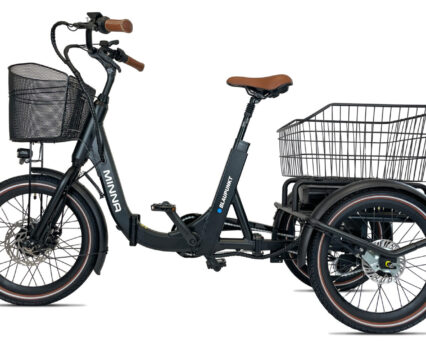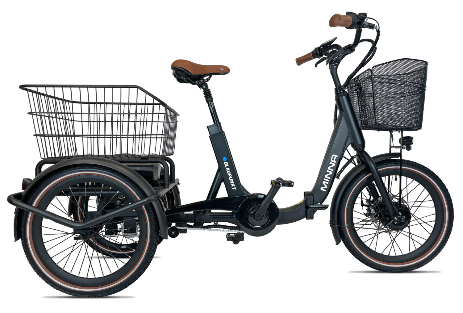 Blaupunkt bringt das faltbare E-Lastenrad MINNA in überarbeiteter Form auf den Markt. Das 20-Zoll-E-Trike richtet sich als kompakter Tiefeinsteiger an Nutzerinnen und Nutzer, die eine platzsparende Transportlösung für Alltag und Einkauf suchen. Die Neuauflage setzt auf einen leichteren, zugleich steiferen Rahmen, einen verfeinerten Faltmechanismus sowie zusätzliche sicherheitsrelevante Ausstattungsdetails. Wie bisher ist das Modell StVZO-konform ausgerüstet und wird inklusive Beleuchtung, Reflektoren, Schutzblechen und zweier Transportkörbe ausgeliefert.