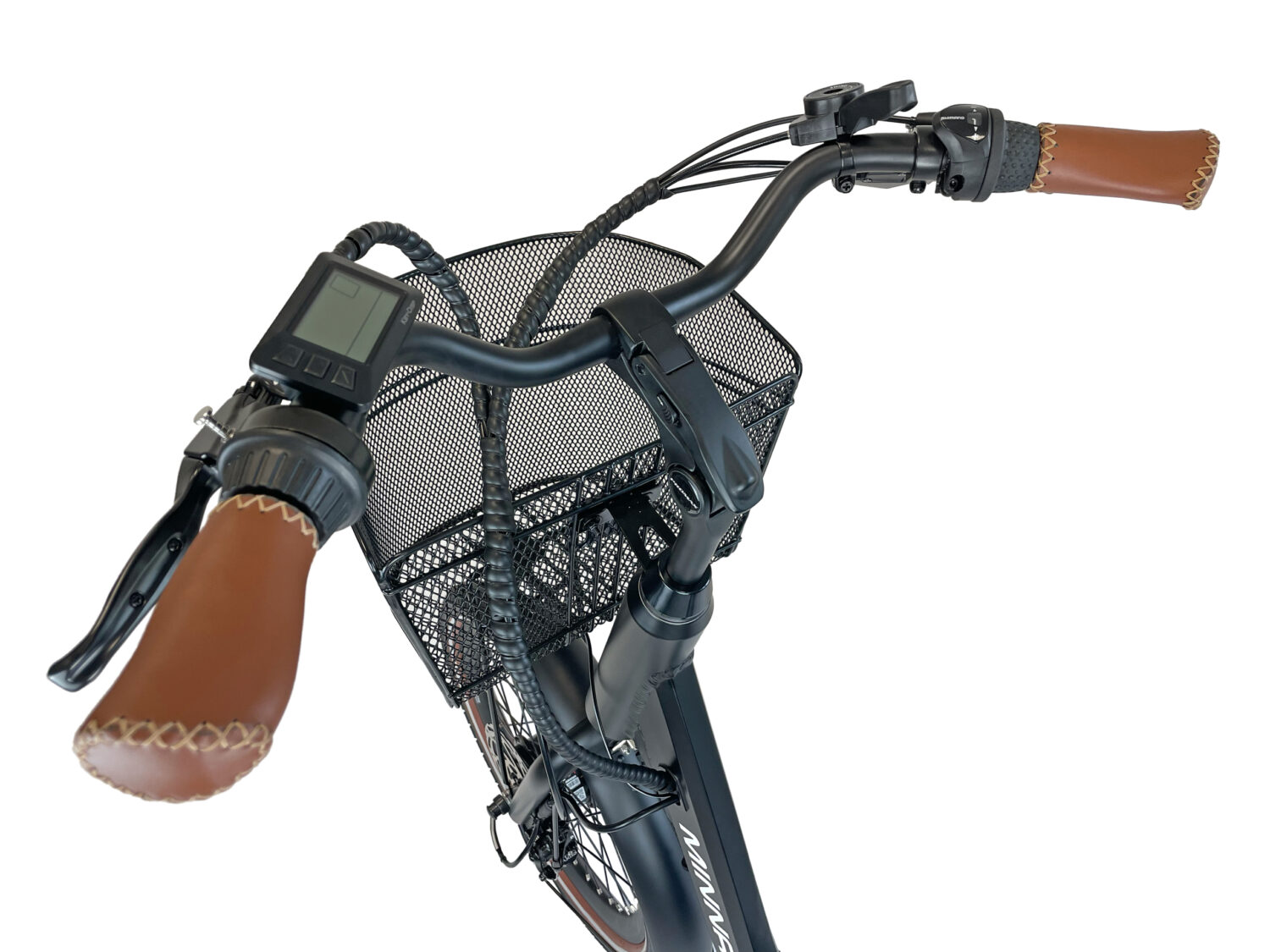 Angetrieben wird das MINNA von einem kompakten Frontmotor mit 36 Volt und einem maximalen Drehmoment von 50 Newtonmetern. Die Unterstützung reicht bis zur gesetzlich erlaubten Höchstgeschwindigkeit von 25 km/h und wird über einen LCD-Bordcomputer gesteuert. Eine verstärkte Hinterradbremse soll dabei für ein ausgewogenes und kontrollierbares Bremsverhalten sorgen.