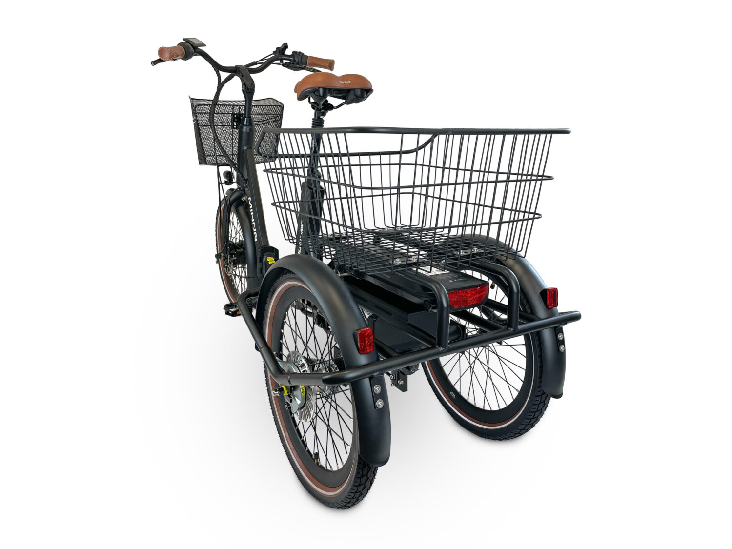 Kern der Überarbeitung ist das neue Rahmendesign. Durch geänderte Rohrformen und ein spezielles Schweißverfahren konnte das Gewicht auf 42 Kilogramm inklusive Akku reduziert werden, ohne Abstriche bei Stabilität und Haltbarkeit zu machen. Die zulässige Gesamtlast liegt weiterhin bei bis zu 150 Kilogramm, wodurch sich das Trike auch für den Transport schwererer Einkäufe eignet.