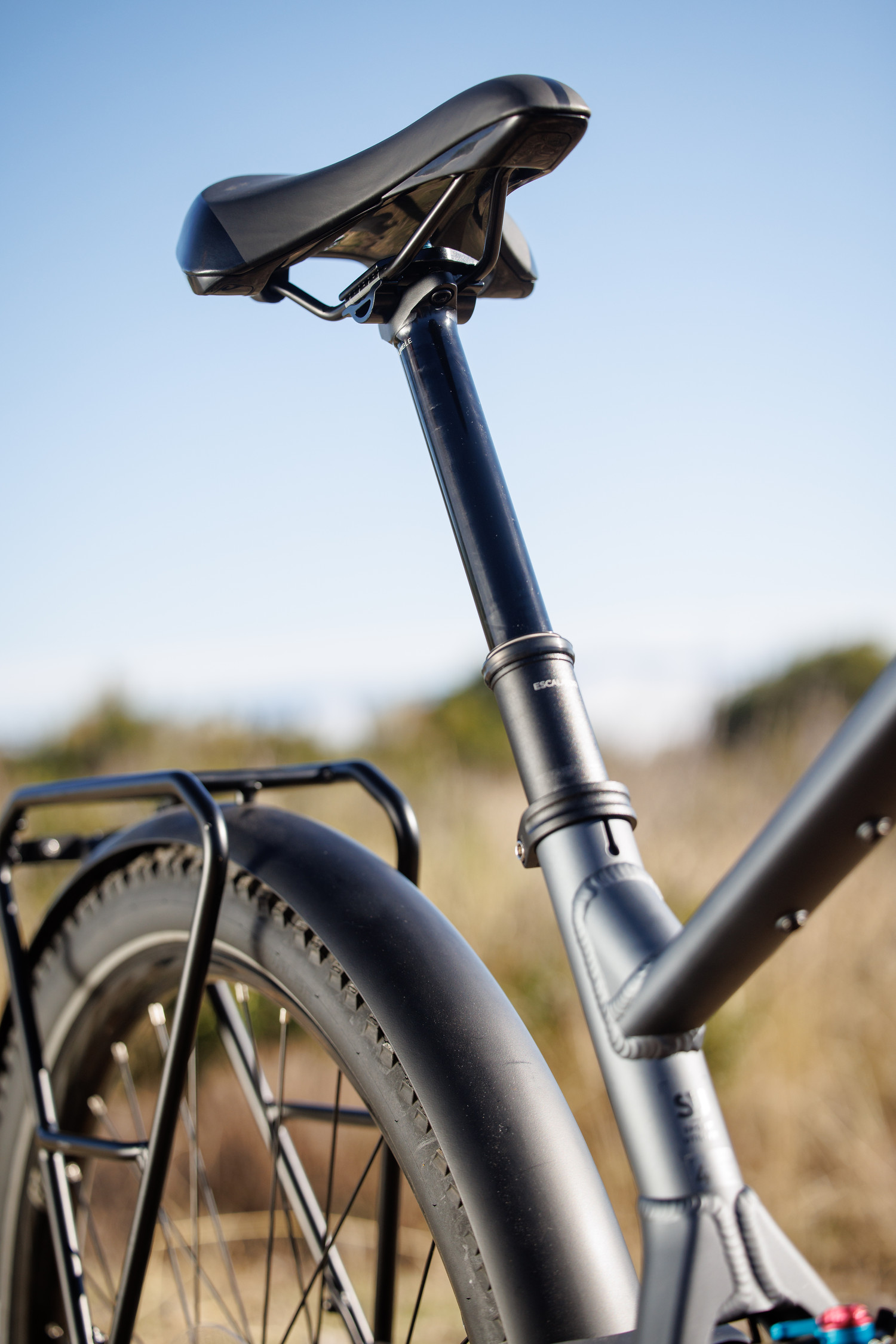 Ein praktisches Detail für den Stadtverkehr: die per Lenkerhebel bedienbare absenkbare Sattelstütze (Dropper Post). Sie erleichtert das Auf- und Absteigen erheblich und erhöht die Standsicherheit an Ampeln und beim Parken.