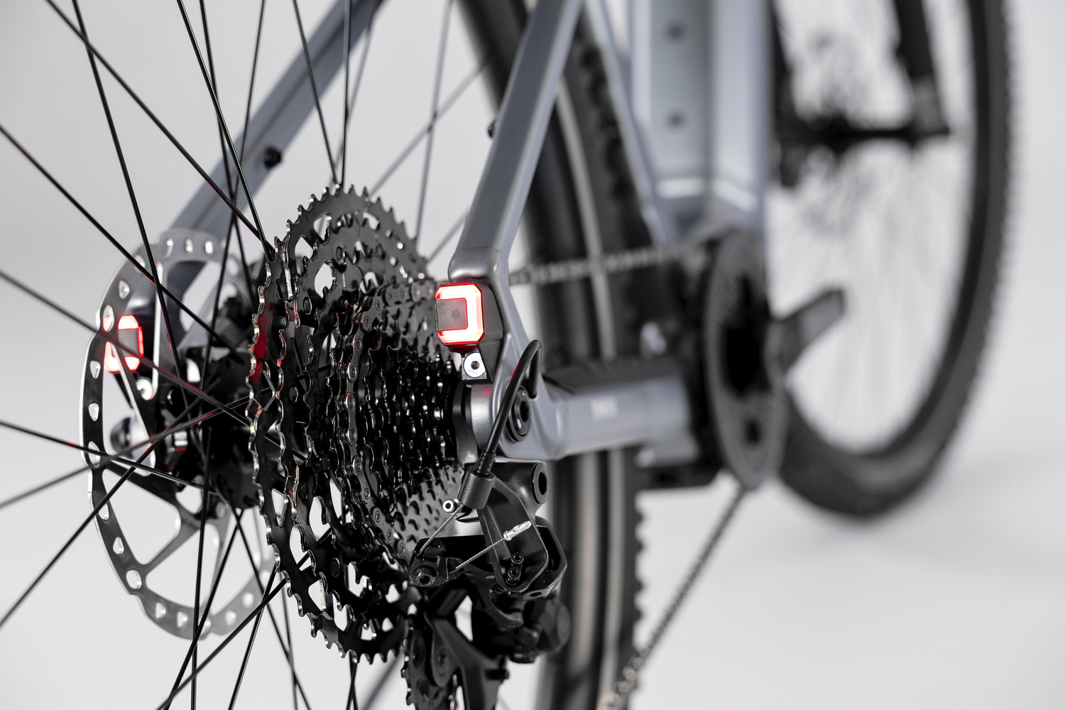 Für Rahmenschutz sorgt die Silent Protection IV-Technologie mit durchgängigen Luftkammern an den Kettenstreben. Eine im Oberrohr integrierte USB-C-Schnittstelle ermöglicht das Aufladen von Geräten während der Fahrt.