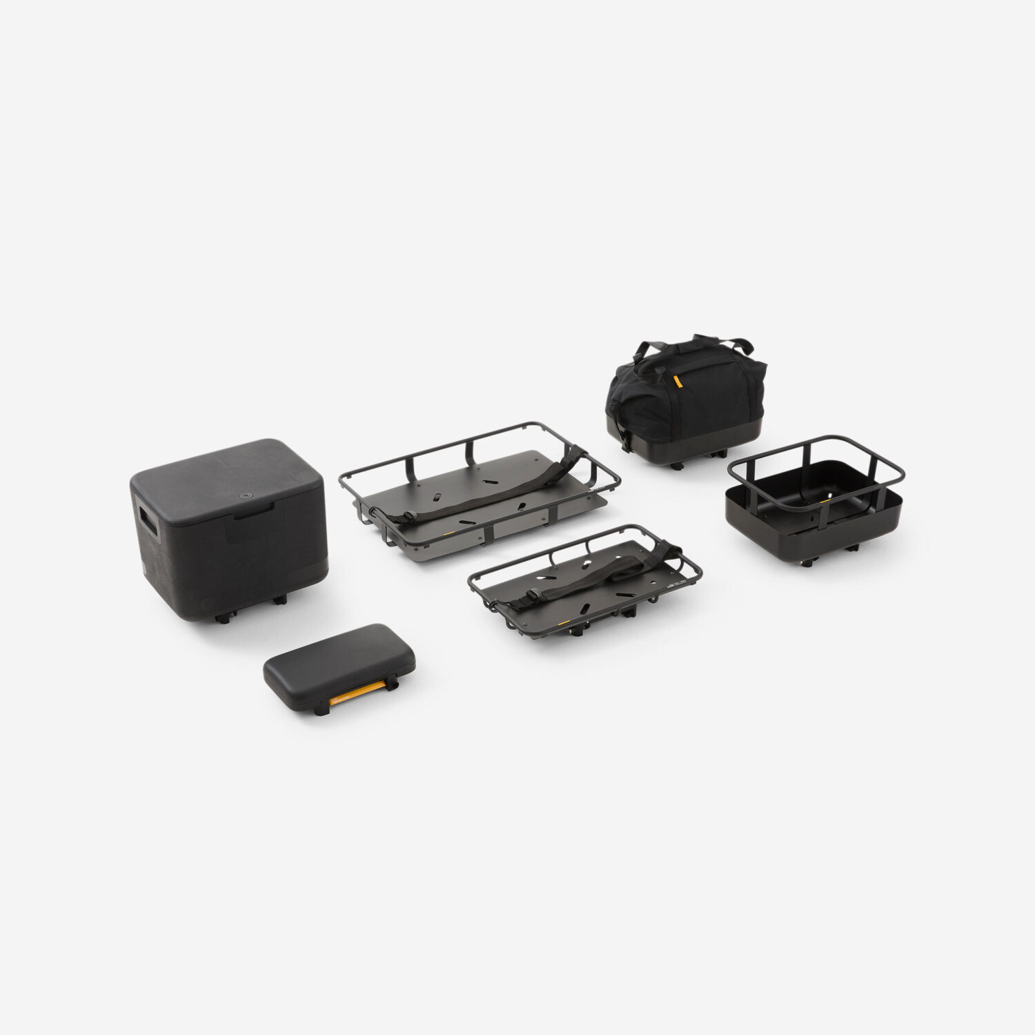 Das E THREE 500 ist für das modulare B’CLIP System vorbereitet. Sechs Module einschließlich Sitzpolster, Körbe, Transportbox, variable Tasche sowie zwei Plattformgrößen lassen sich werkzeuglos per Schnellverschluss montieren. Der Wechsel zwischen den Komponenten erfolgt innerhalb weniger Sekunden.