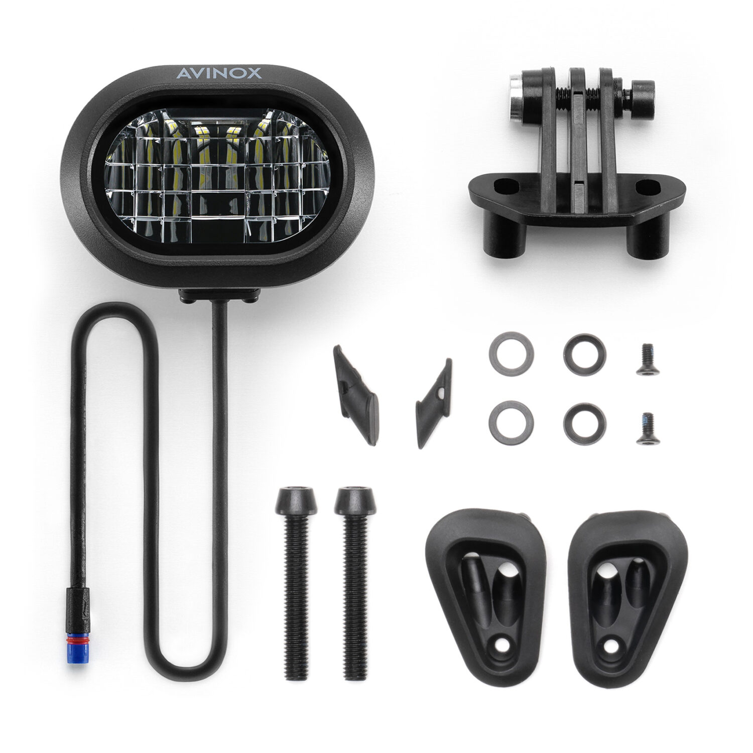 Erster Partner von Avinox ist Amflow: Das Modell Amflow PL wird ab sofort mit dem neuen Frontlicht angeboten. Die „Amflow Smart Frontlicht Combo“ umfasst neben dem Licht selbst ein Installationskit mit Montageadapter, Einstellschrauben, Abstandshaltern und Befestigungselementen.