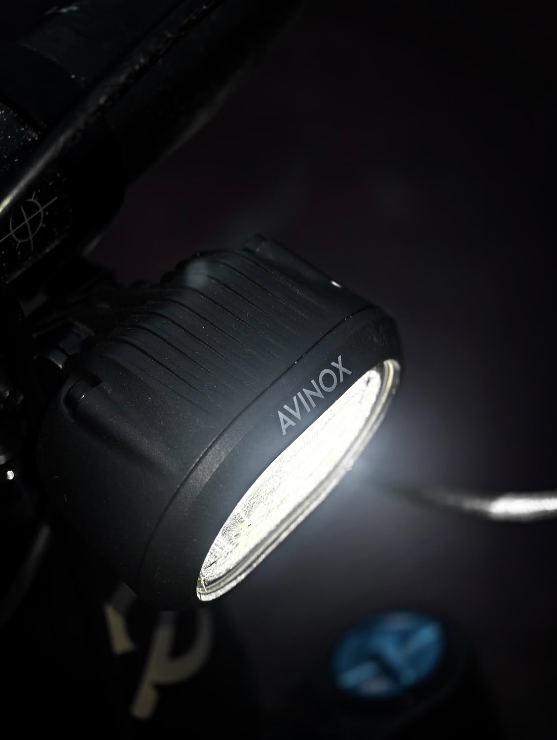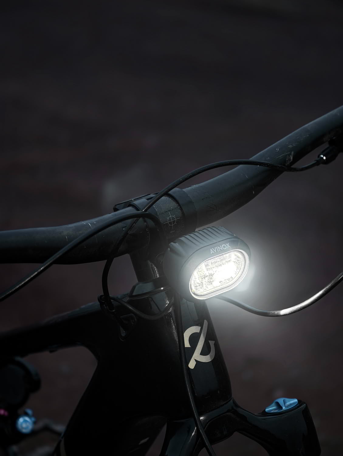 Im Fernlichtmodus erreicht das Avinox-Frontlicht bis zu 1200 Lumen. Der präzisionsgefertigte Reflektor verteilt das Licht gleichmäßig und bietet eine weite, fokussierte Ausleuchtung – sowohl auf Trails als auch im Stadtverkehr. Damit verbindet die Lampe Energieeffizienz mit praxisgerechter Sichtweite.