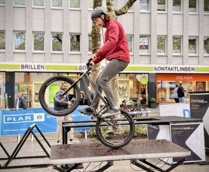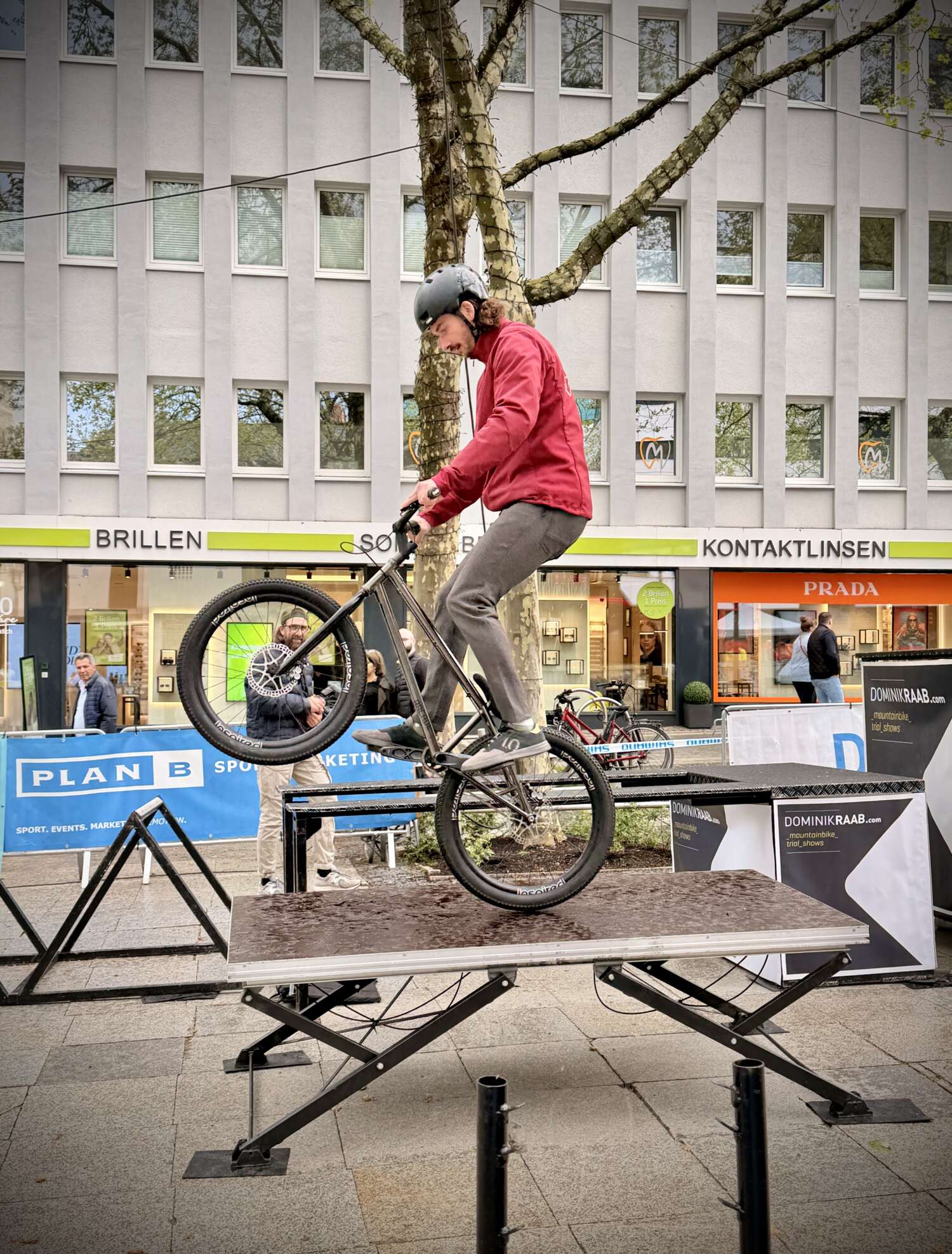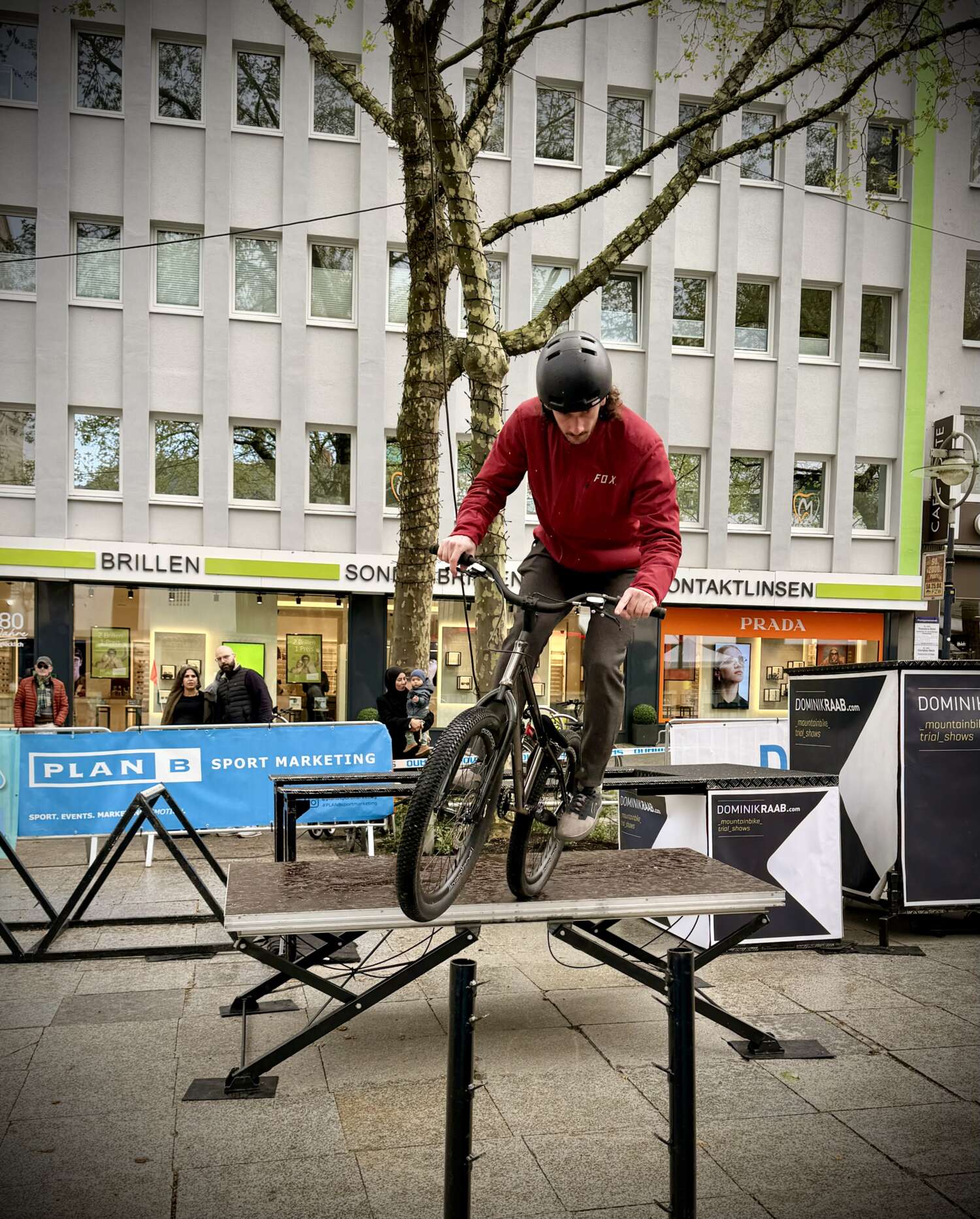 Zu den Publikumsmagneten zählten zudem die Trial-Shows von Dominik Raab. Mit präziser Fahrtechnik und spektakulären Manövern demonstrierte der Österreicher eindrucksvoll die Möglichkeiten des Mountainbike-Sports und sorgte insbesondere am Samstag sowie am verkaufsoffenen Sonntag für dichte Zuschauerreihen.