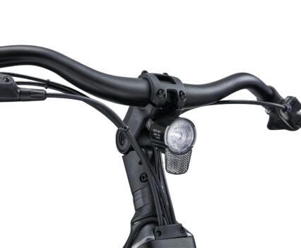 Die Bremsen stammen von Tektro (HD-M281, hydraulische Scheibenbremsen mit 180 Millimeter vorne und 160 Millimeter hinten). Die Beleuchtung wird direkt vom E+ System gespeist: Eine Giant Recon HL50 mit 50 Lux vorne sowie ein in den Gepäckträger integriertes Rücklicht.