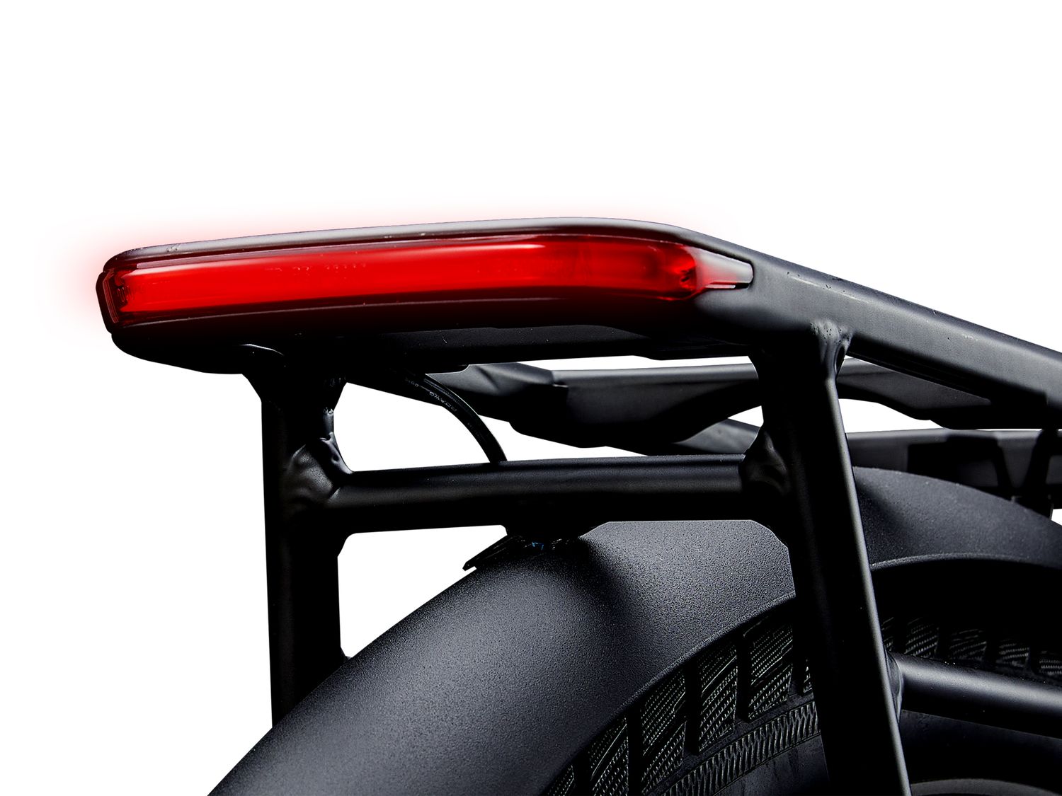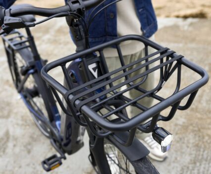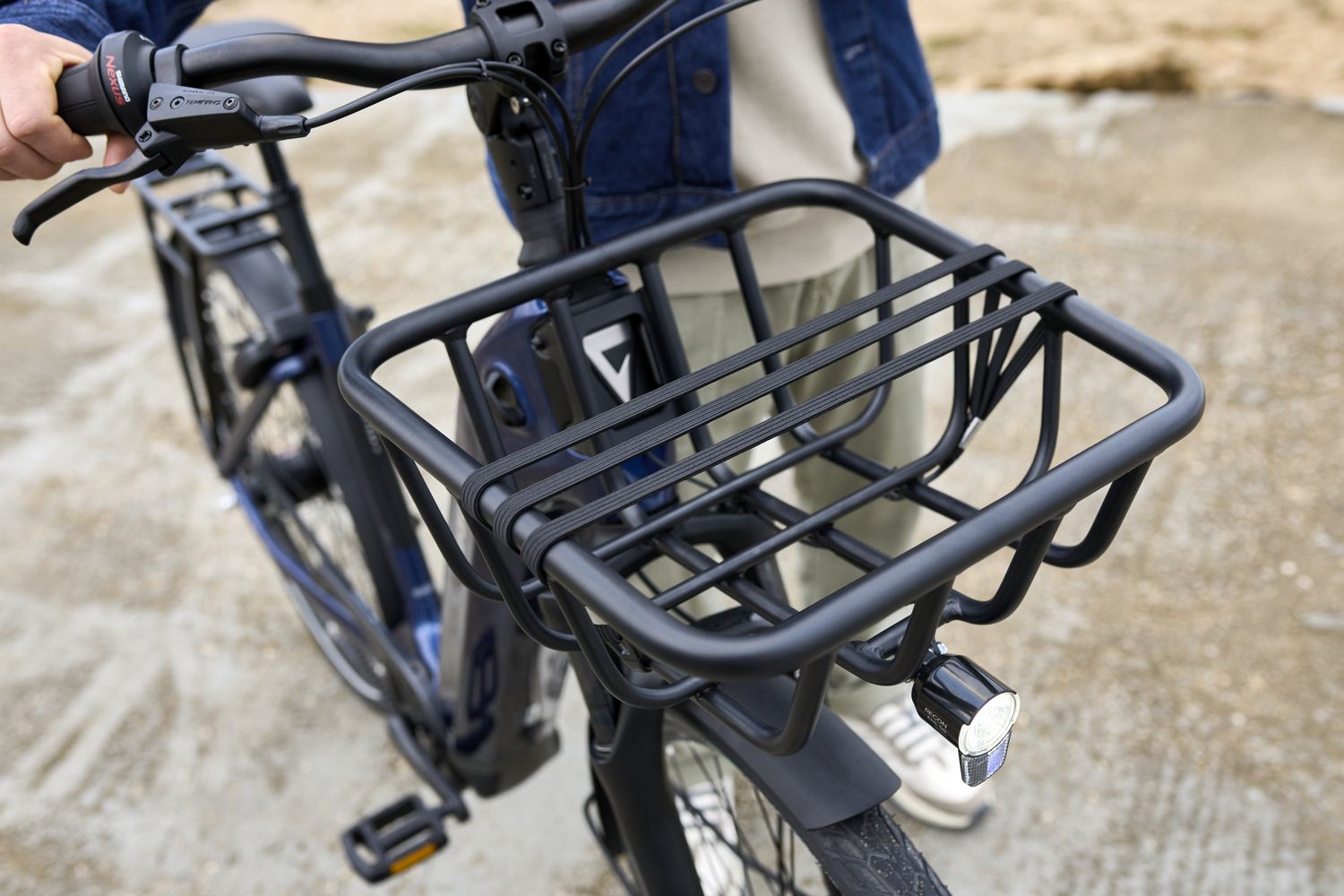 Der vollintegrierte Heckträger ist als strukturelles Element des Rahmens konstruiert und MIK-kompatibel für werkzeugloses Montieren von Taschen. Vorne kann optional ein spezieller E-Bike-Frontkorb mit 15 Kilogramm Traglast montiert werden, der direkt am Steuerrohr befestigt wird.
