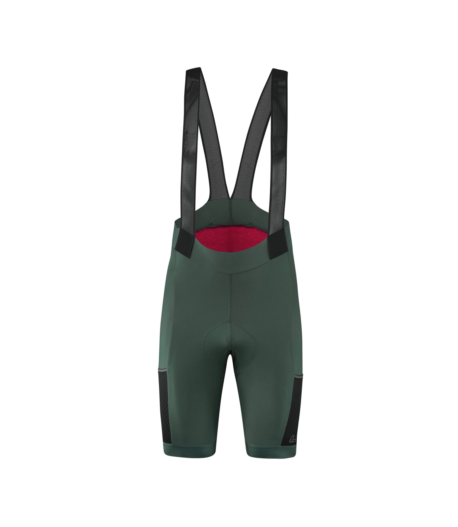 Die Bike Bibshorts SKYS XT bieten mit insgesamt vier offenen Taschen zwei seitlich, zwei hinten, ungewöhnlich viel Stauraum. Der aus eigener Produktion stammende Elastic-Interlock-Stoff sorgt für angenehme Kompression, während eine optimierte Nahtführung und das Comfort-Extreme-Sitzpolster auf lange Distanzen ausgelegt sind. Für Damen ist zusätzlich eine trägerlose Variante erhältlich.