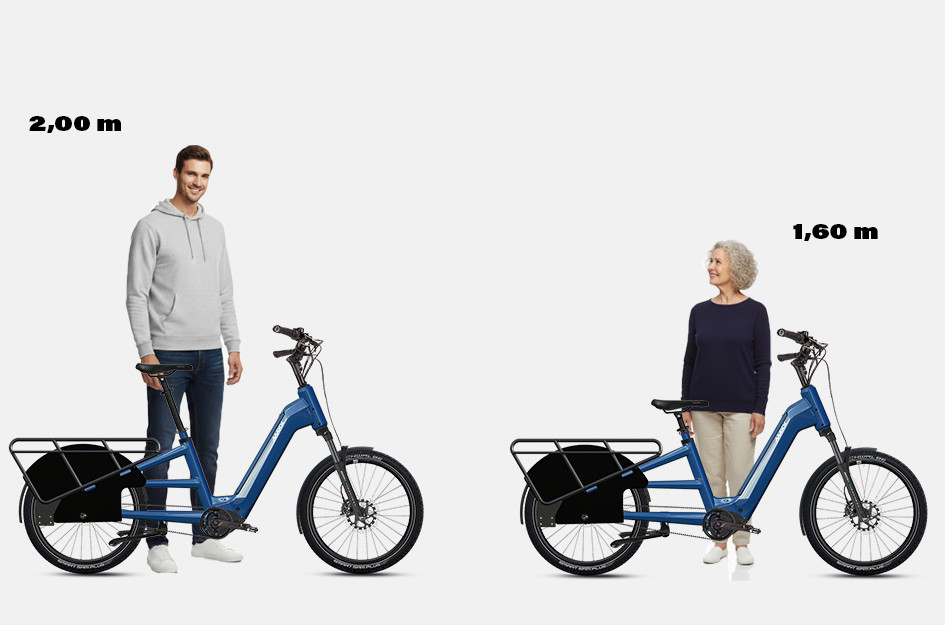 Der tiefe Einstieg soll ein einfaches Auf- und Absteigen ermöglichen, während die Geometrie ein kontrolliertes Fahrverhalten auch bei voller Beladung fördern soll. Die 24-Zoll-Laufräder tragen zu stabiler Fahreigenschaft bei, die kompakte Bauweise unterstützt Wendigkeit im urbanen Umfeld.