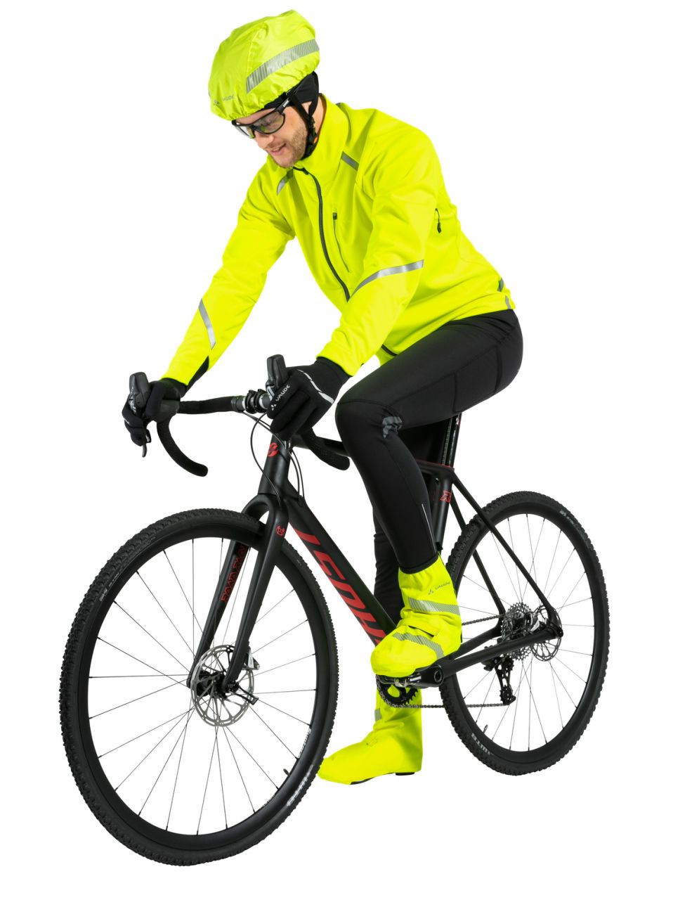 Mit der „Luminum“-Kollektion in knalligem Neongelb bietet Bekleidungsspezialist Vaude leuchtende Jacken und Hosen für Radfahrende. Neben der auffälligen Farbe verfügen die Produkte über reflektierende Elemente. Die Reflektoren sind so angeordnet, dass sie Radfahrenden eine 360-Grad-Sichtbarkeit verleihen. Die Produkte bestehen aus Polyestergarn aus recycelten PET-Flaschen, was die Herstellung klimafreundlich und ressourcenschonend macht.