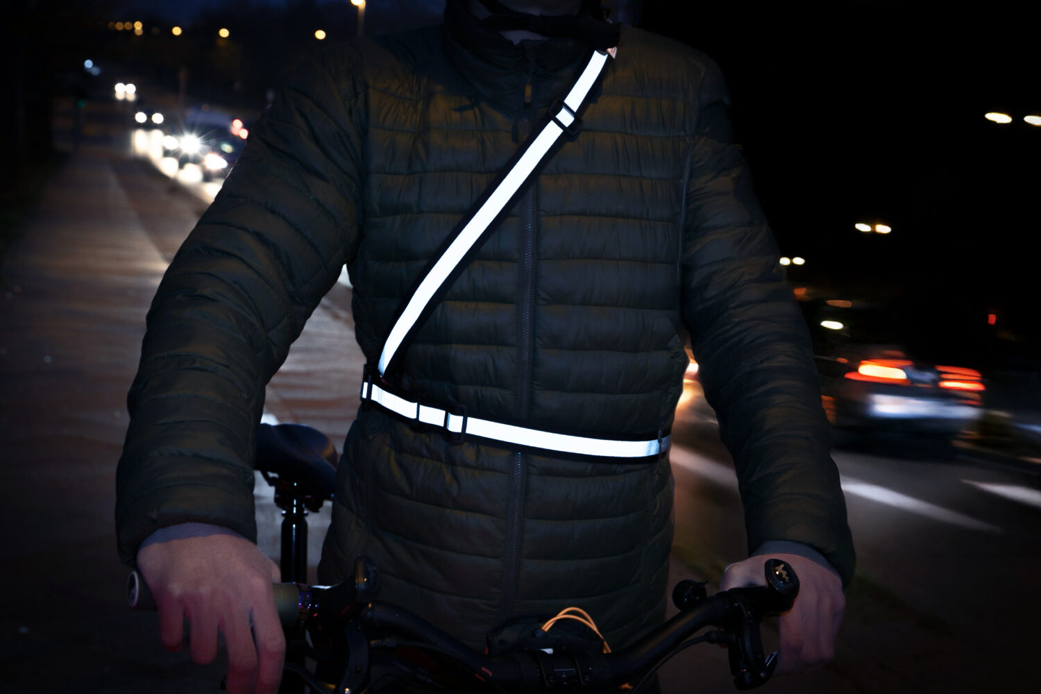 Der Spezialist für urbane Accessoires, Fahrer Berlin, hat in seinem Angebot diverse Produkte, um die Sichtbarkeit mit einfachen Mitteln zu verbessern. Beim „Band“ handelt es sich um ein Klettband für das Hosenbein, das aus recycelten Materialien hergestellt wird. In erster Linie dient es dazu, dass sich das Hosenbein nicht in der Kette verhakt. Es hat zusätzlich einen breiten Reflexstreifen. Zudem gibt es die Reflektorschärpe “Fläsh“. Der Schultergurt ist mit einem reflektierenden Streifen versehen und kann auf unterschiedliche Körperformen eingestellt werden.