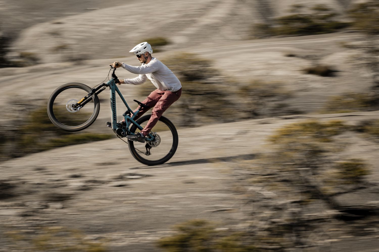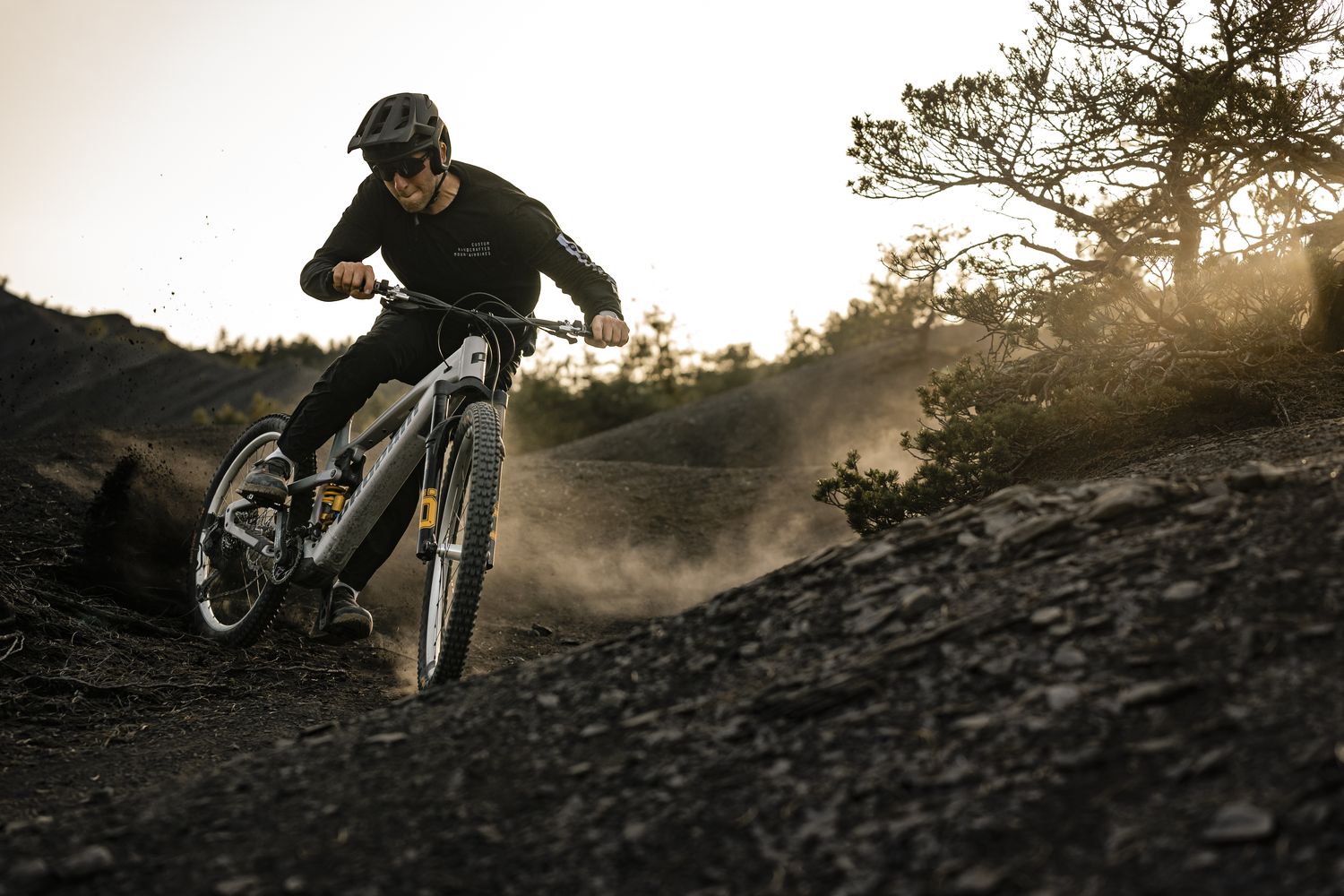 Die Tretlagerabsenkung fällt mit 8 mm (vorne) und 28 mm (hinten) etwas geringer aus als beim Trail-Modell, das Tretlager liegt also marginal höher, sinnvoll auf felsigem oder unebenem Terrain, wo Bodenfreiheit zählt.