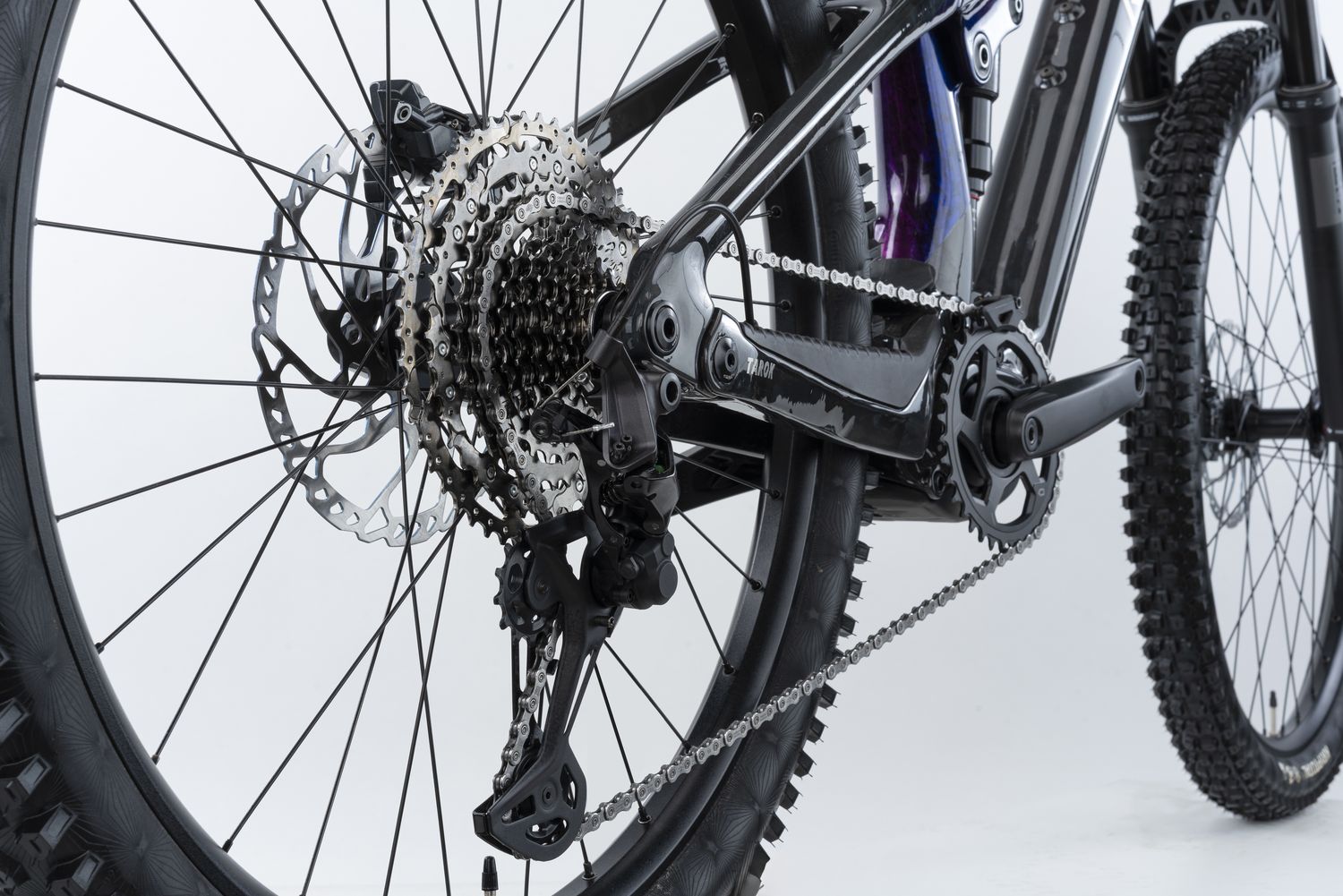 Das Topmodell Tarok Ultimate setzt auf die Kombination aus Fox 36 Float Factory Gabel (160 mm) und Fox Float X Factory Dämpfer, ein bewährtes Duo aus dem oberen Regal der Fahrwerkskomponenenten.