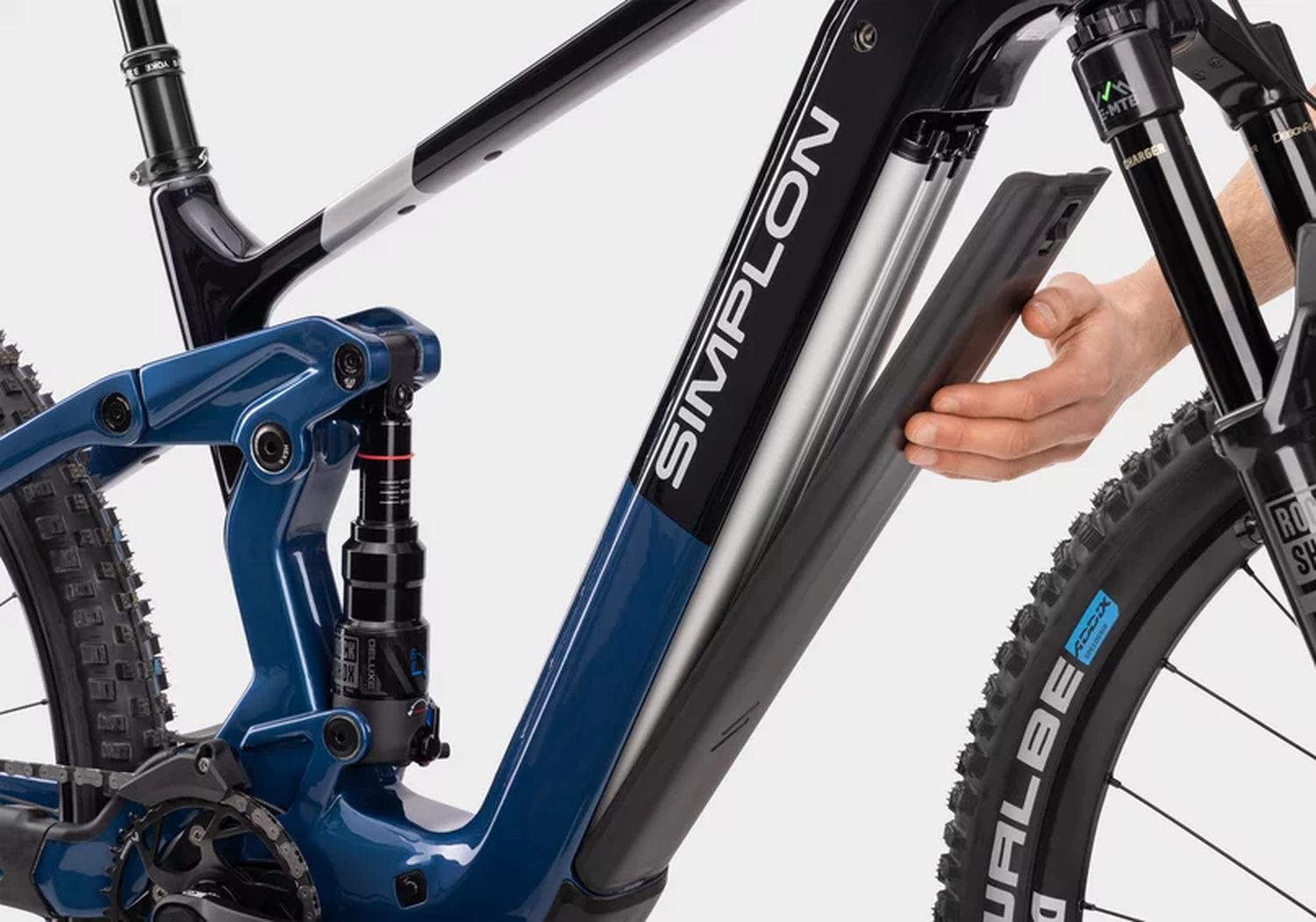 Beim Akkukonzept verfolgt Simplon einen besonders flexiblen Ansatz. In der Standardkonfiguration kann zwischen einem 600-Wh- und einem 800-Wh-Akku gewählt werden, wobei beide Varianten intern im Unterrohr verbaut sind.