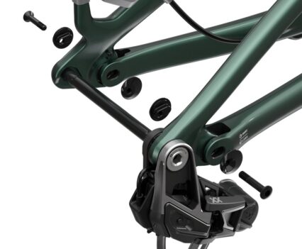 Die Geometrie folgt aktuellen Trends: Ein Lenkwinkel von 65 Grad ist Mittelmaß, der steile Sitzwinkel von 77 Grad mittlerweile Standard für effiziente Kletterperformance. Das tiefe Tretlager mit 339 Millimeter senkt den Schwerpunkt, was die Kurvenstabilität verbessert, allerdings auf Kosten der Bodenfreiheit in verblocktem Gelände. Die Kettenstreben von 447 Millimeter sind für moderne Verhältnisse kompakt, aber nicht außergewöhnlich kurz.