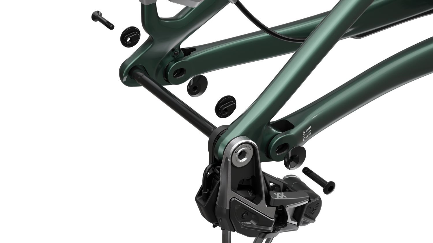 Die Geometrie folgt aktuellen Trends: Ein Lenkwinkel von 65 Grad ist Mittelmaß, der steile Sitzwinkel von 77 Grad mittlerweile Standard für effiziente Kletterperformance. Das tiefe Tretlager mit 339 Millimeter senkt den Schwerpunkt, was die Kurvenstabilität verbessert, allerdings auf Kosten der Bodenfreiheit in verblocktem Gelände. Die Kettenstreben von 447 Millimeter sind für moderne Verhältnisse kompakt, aber nicht außergewöhnlich kurz.