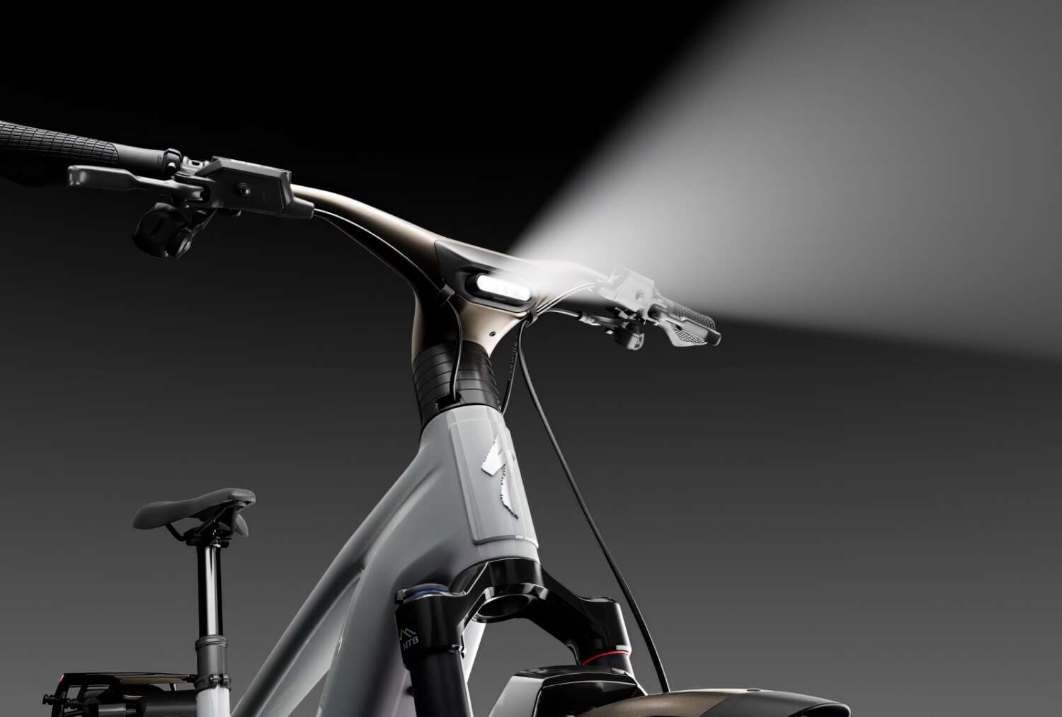 Das integrierte LED-Scheinwerfersystem bietet zwei Helligkeitsstufen: 450 Lumen im Abblend- und 805 Lumen im Fernlicht. Am Heckträger ist ein Bremslicht integriert; die 6.0-Ausstattungsvarianten erhalten darüber hinaus ein Garmin-Radar-System zur Erkennung von Fahrzeugen von hinten.