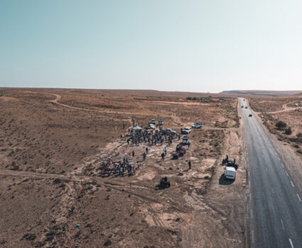 Eine der eindrücklichsten Stories ist die Anreise des Schotten James Shirley: Er fährt komplett mit dem Rad an: Quer durch Italien, per Fähre über Sardinien und Sizilien nach Tunis und weiter entlang der Küste bis nach Tataouine, dem Startort. Seine Rückkehr plant er ebenfalls per Fahrrad.