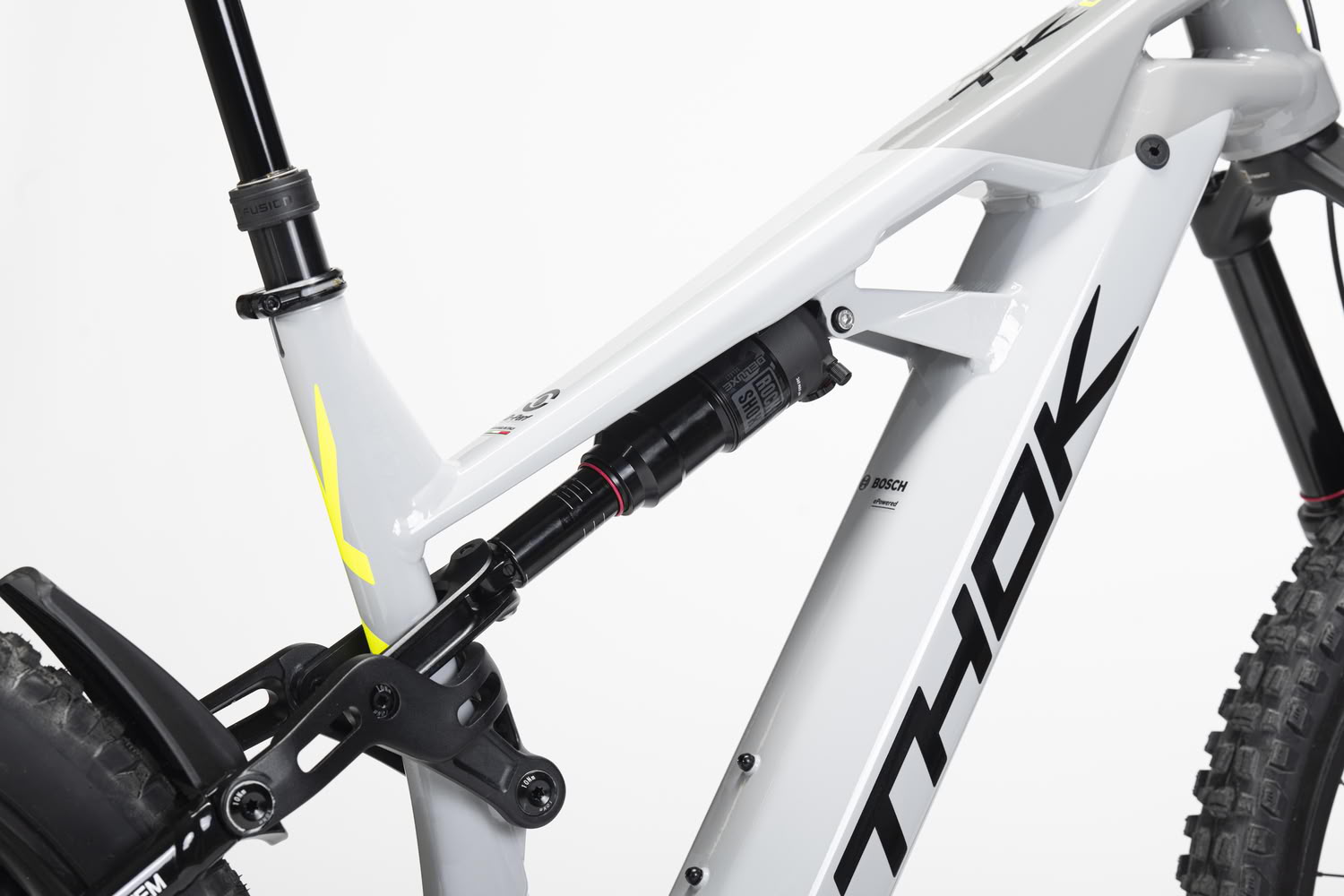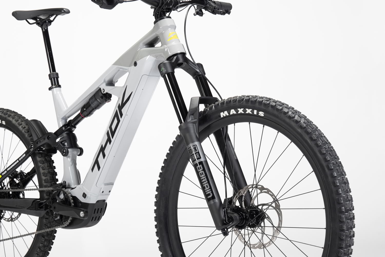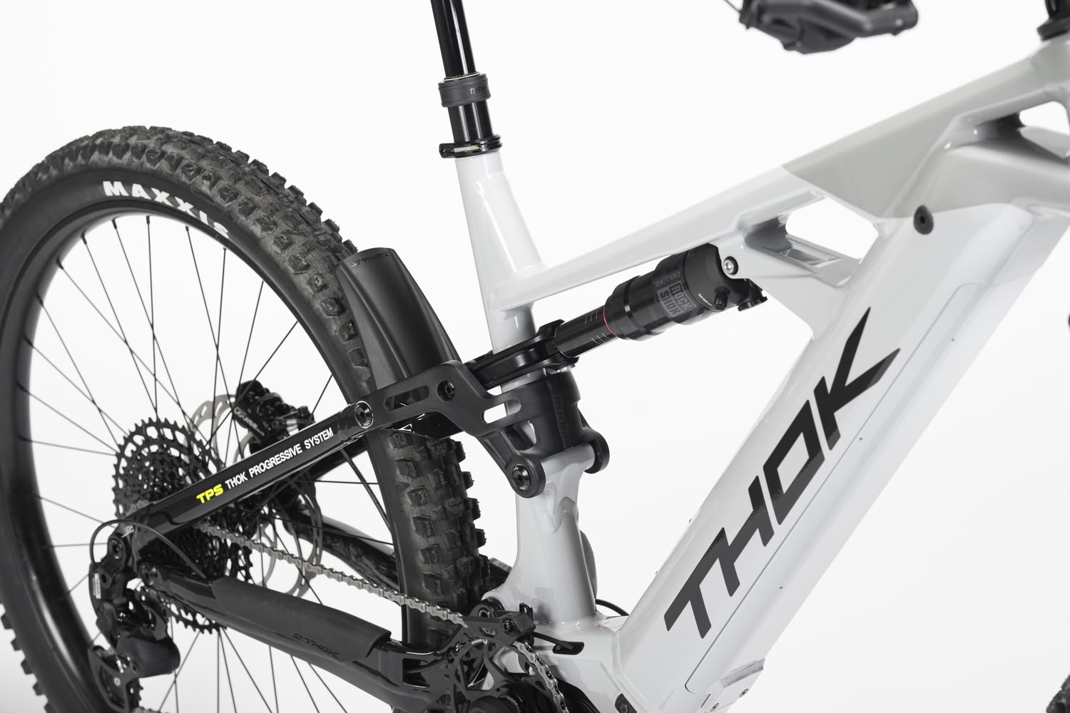 Auch bei der Ausstattung setzt THOK auf bewährte Komponenten aus dem Gravity-Segment. Vorne arbeitet eine RockShox Domain Gold R Federgabel mit 38-mm-Standrohren und 170 mm Federweg, ergänzt durch einen RockShox Deluxe Select Dämpfer. Das Fahrwerk ist auf hohe Reserven und Kontrolle in anspruchsvollem Gelände ausgelegt.