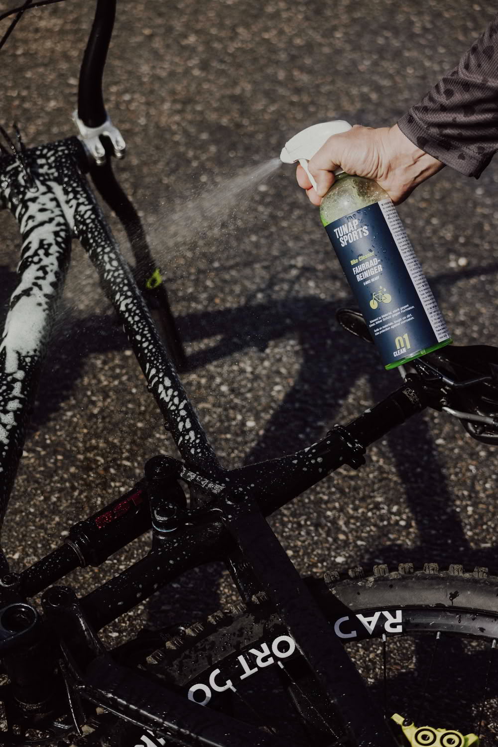 Der Tunap Sports Fahrradreiniger ist darauf ausgelegt, auch hartnäckige Verschmutzungen wie eingetrockneten Schmutz, Rückstände von Gels oder Dichtmilch zu lösen. Gleichzeitig ist die Rezeptur materialschonend und für alle gängigen Oberflächen geeignet, darunter Lacke, Dichtungen und Bremskomponenten. Eine spezielle Hafttechnologie sorgt dafür, dass der Reiniger an senkrechten Flächen nicht sofort abläuft, sondern dort wirkt, wo er benötigt wird.