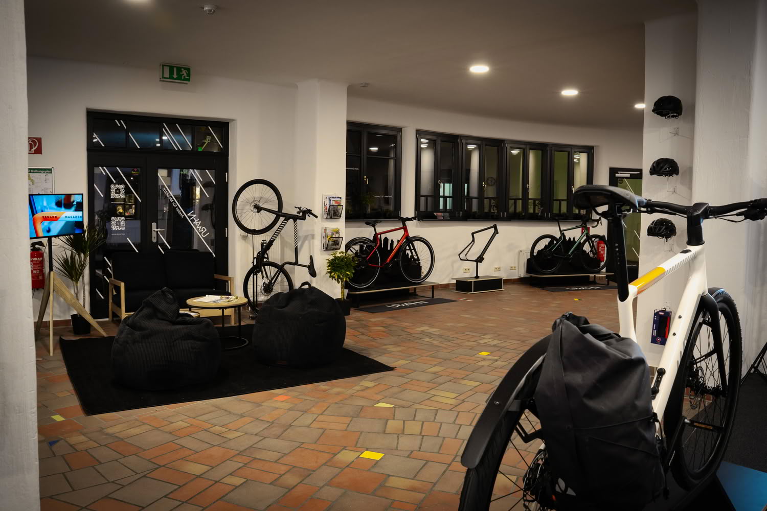 Der Concept Store versteht sich als räumliche Verlängerung der nahegelegenen Manufaktur am Lorenzweg. Besucherinnen und Besucher erhalten hier Zugang zu allen Modellgenerationen, Sondereditionen und – ganz im Sinne des offenen Konzepts – die Möglichkeit zu Probefahrten. Darüber hinaus gibt der Store Einblicke in die Fertigungsprozesse rund um 3D-Druck und Stahlrahmenbau.