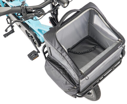 Während das RuffHouse vor allem für kleinere Vierbeiner gedacht ist, gibt es für größere Tiere bis 13,5 Kilogramm weiterhin das bereits bekannte Doghouse Mini, das auf dem hinteren Gepäckträger der kompakten Pedelecs zum Einsatz kommt. Damit bietet Tern für unterschiedliche Anforderungen passende Lösungen an.