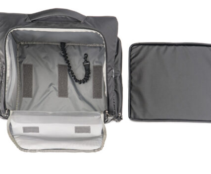 Der Boden der Box ist weich gepolstert und lässt sich zur Reinigung einfach herausnehmen – ein Detail, das im Alltag schnell geschätzt wird. Darüber hinaus bietet das RuffHouse seitliche Taschen für kleinere Utensilien, etwa Trinkflaschen, Snacks oder Hundebeutel. Reflektierende Elemente erhöhen die Sichtbarkeit im Straßenverkehr und tragen so zur Sicherheit bei Dämmerung oder schlechten Lichtverhältnissen bei.