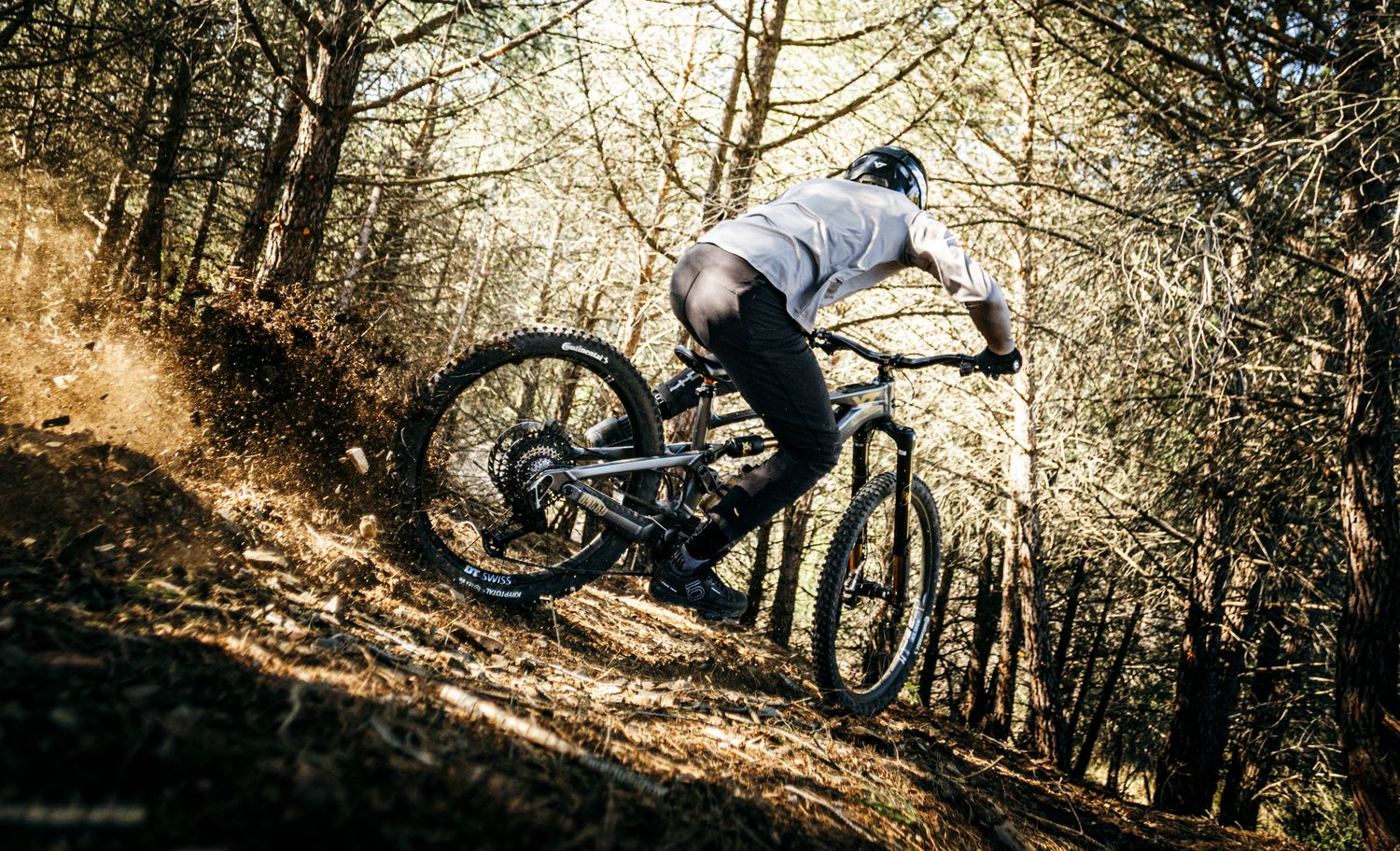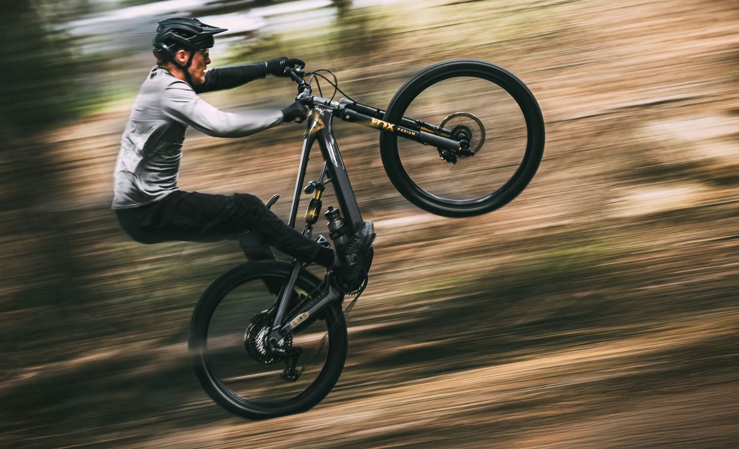 Die „Launch Edition“ setzt auf eine FOX-Podium-Factory-Gabel in 29 Zoll mit 170 mm Federweg und Grip-X2-Dämpfung. Am Heck arbeitet ein FOX X2 Factory in der Ausführung 230×65 mm mit Hoch-/Niedergeschwindigkeits-Druck- und Zugstufe, der speziell auf die V4L-Kinematik des Rahmens abgestimmt wurde. Beide Federelemente entstammen der FOX-Factory-Linie und sind für verstellbares, feinfühliges Ansprechverhalten bekannt.