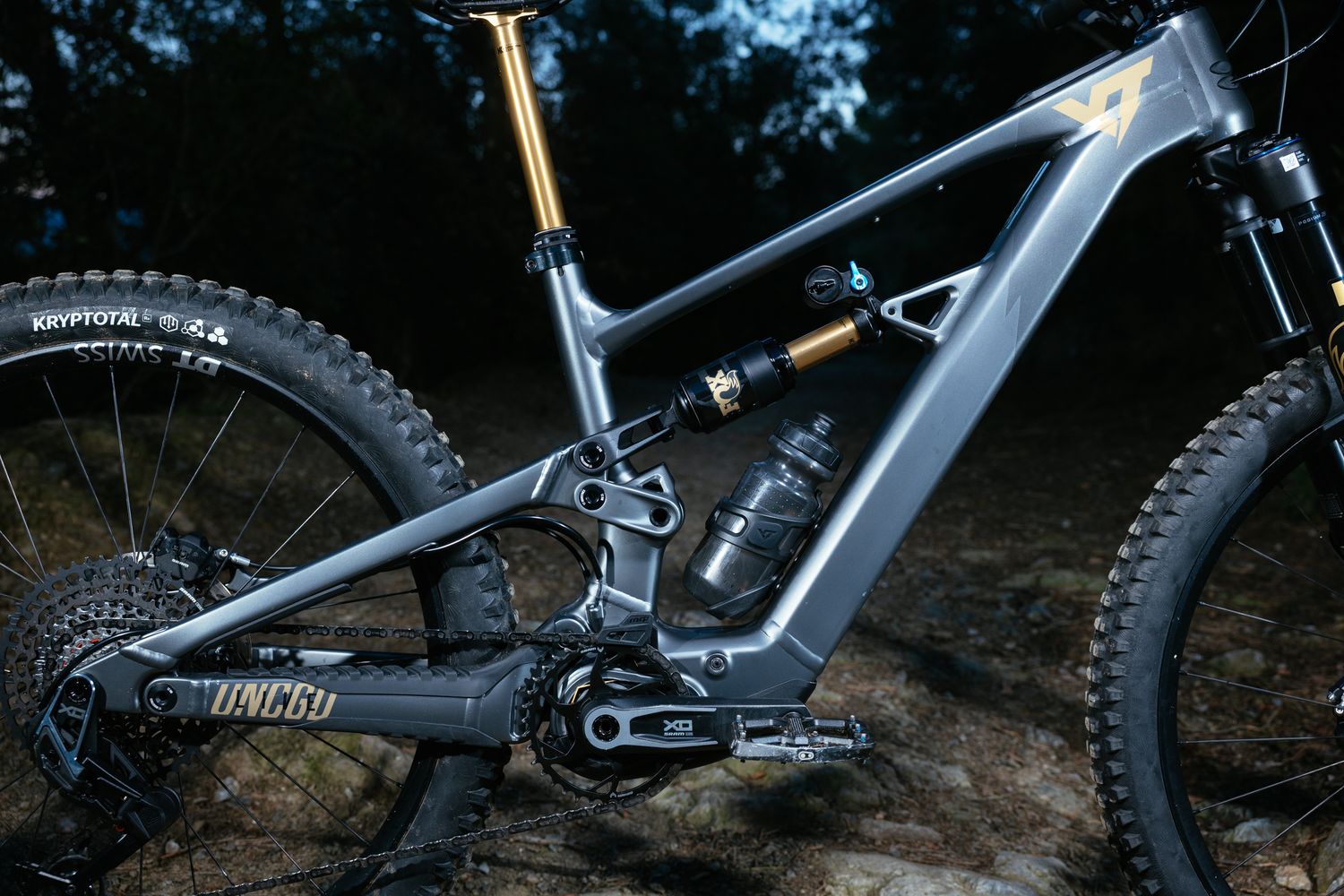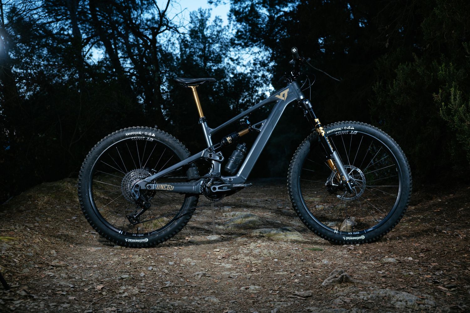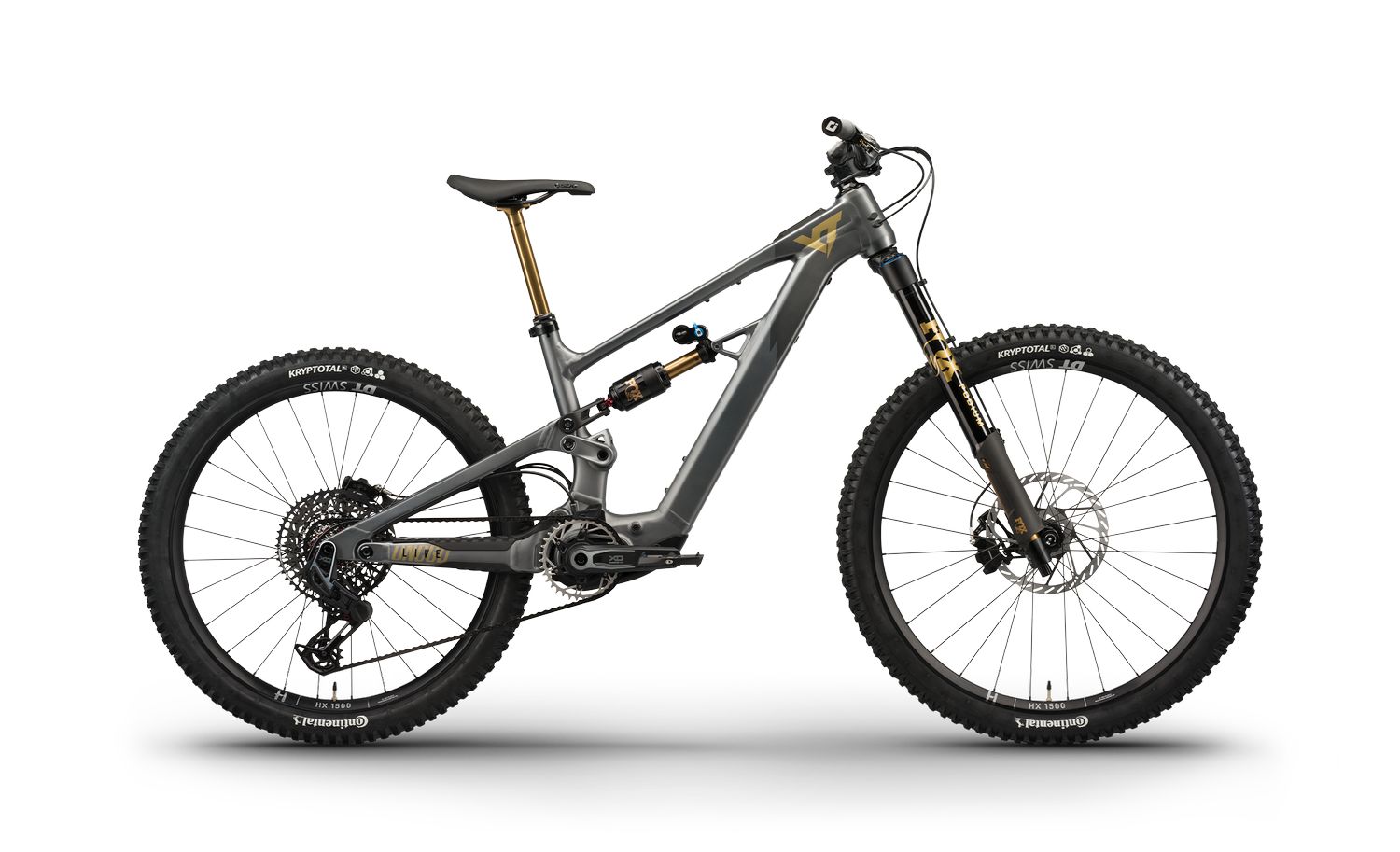 Die Bereifung besteht aus Continental-Kryptotal-Reifen in 2,4-Zoll-WT-Ausführung: vorn mit Enduro-Karkasse in Super-Soft-Gummimischung, hinten mit Downhill-Karkasse in Soft-Mischung. Diese Kombination zielt auf ein Maximum an Traktion und Pannenschutz ab, was angesichts des hohen verfügbaren Drehmoments sinnvoll erscheint.