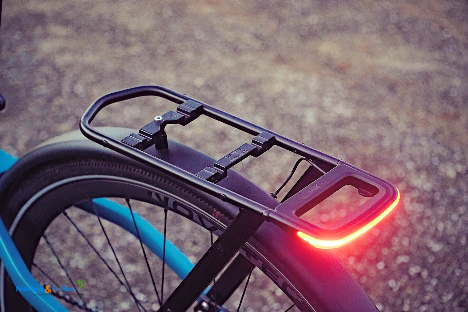 Das Rücklicht von AXA im Gepäckträger jedenfalls bietet gute Sichtbarkeit auch von der Seite und aktiviert automatisch ein Bremslicht beim Verzögern. Beim Einschalten fühlte man sich an K.I.T.T erinnert. 😉