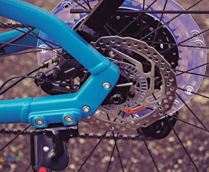 In Kombination mit den 40 mm breiten Schwalbe G ONE Allround-Reifen entsteht so ein agiles Fahrverhalten, das Nutzer sowohl unebene Stadtwege als auch schnelle Spurwechsel souverän absolvieren lässt. Für die Verzögerung sorgen Shimano-MT200-Scheibenbremsen mit 180/160-mm-Rotoren, die zuverlässig im urbanen Alltag funktionieren.
