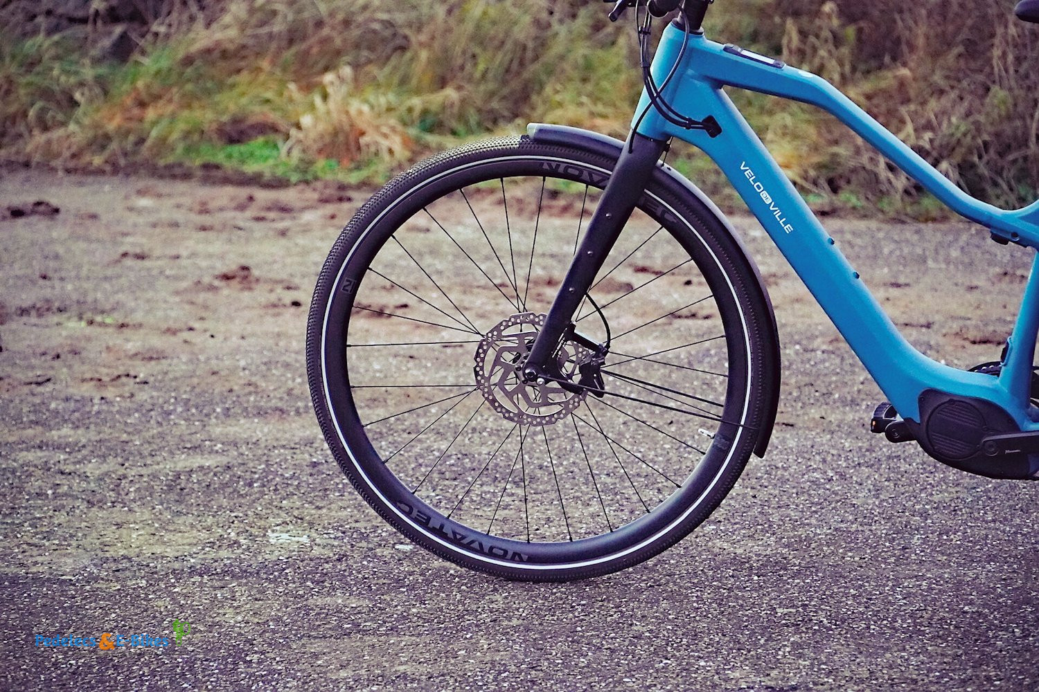 Die Kombination aus der Carbongabel und den 40 mm breiten Schwalbe G-One Allround Reifen auf den leichten Carbonfelgen sorgt für ein komfortables und zugleich agiles Fahrgefühl. Unebenheiten wurden erstaunlich souverän abgefedert, das Handling wirkt direkt und präzise. Hier hat VELO DE VILLE bei der Abstimmung ganze Arbeit geleistet.